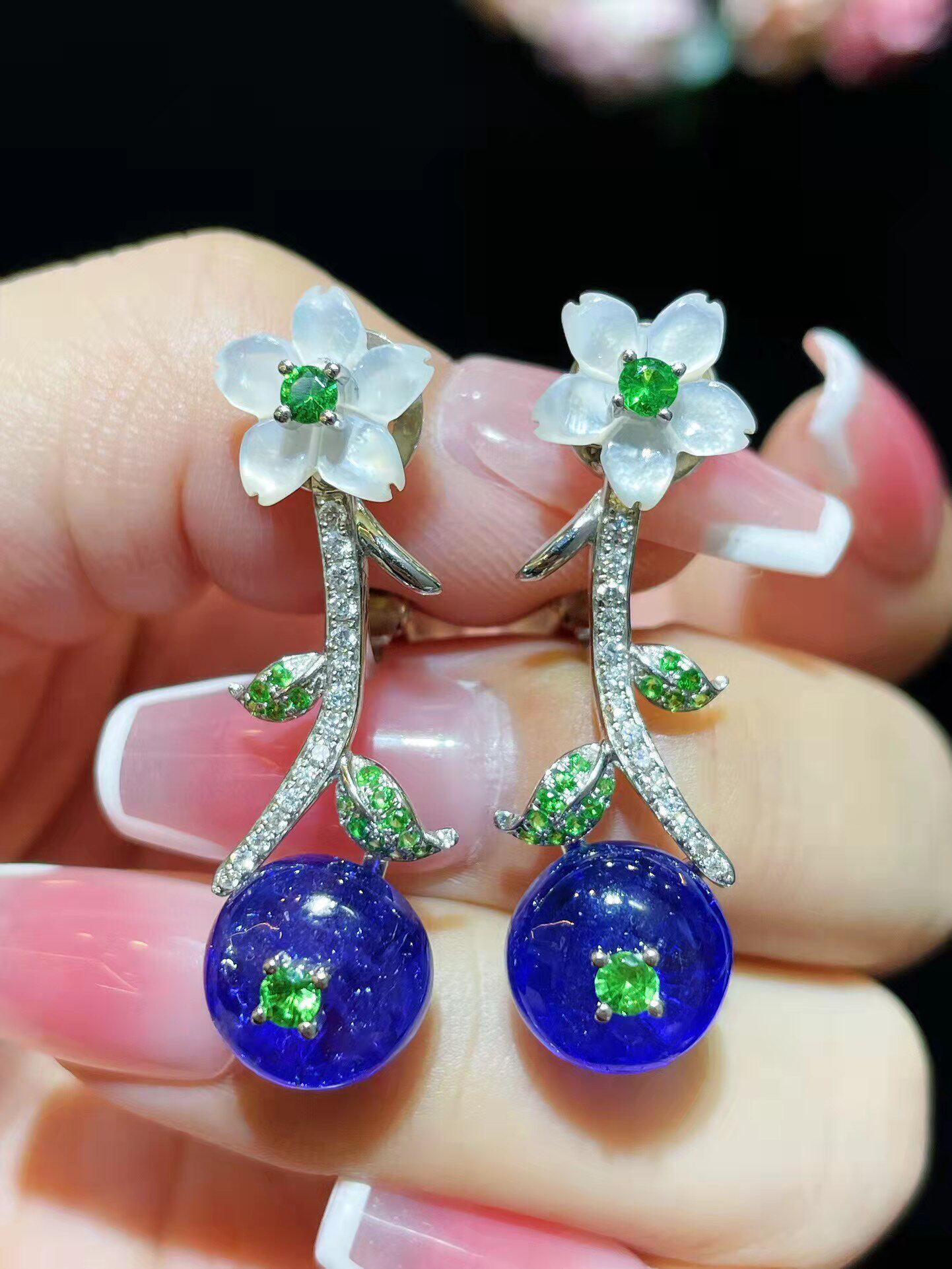 Charlotte tilbury, платиновая бриллиантовая инкрустация камня, дизайнерские серьги, 35mm, белое золото 18 карат, материал