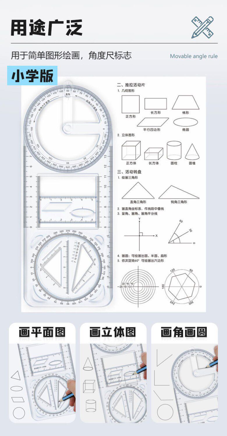 Универсальная линейка для школьников и студентов, крутящийся шаблон, для средней школы