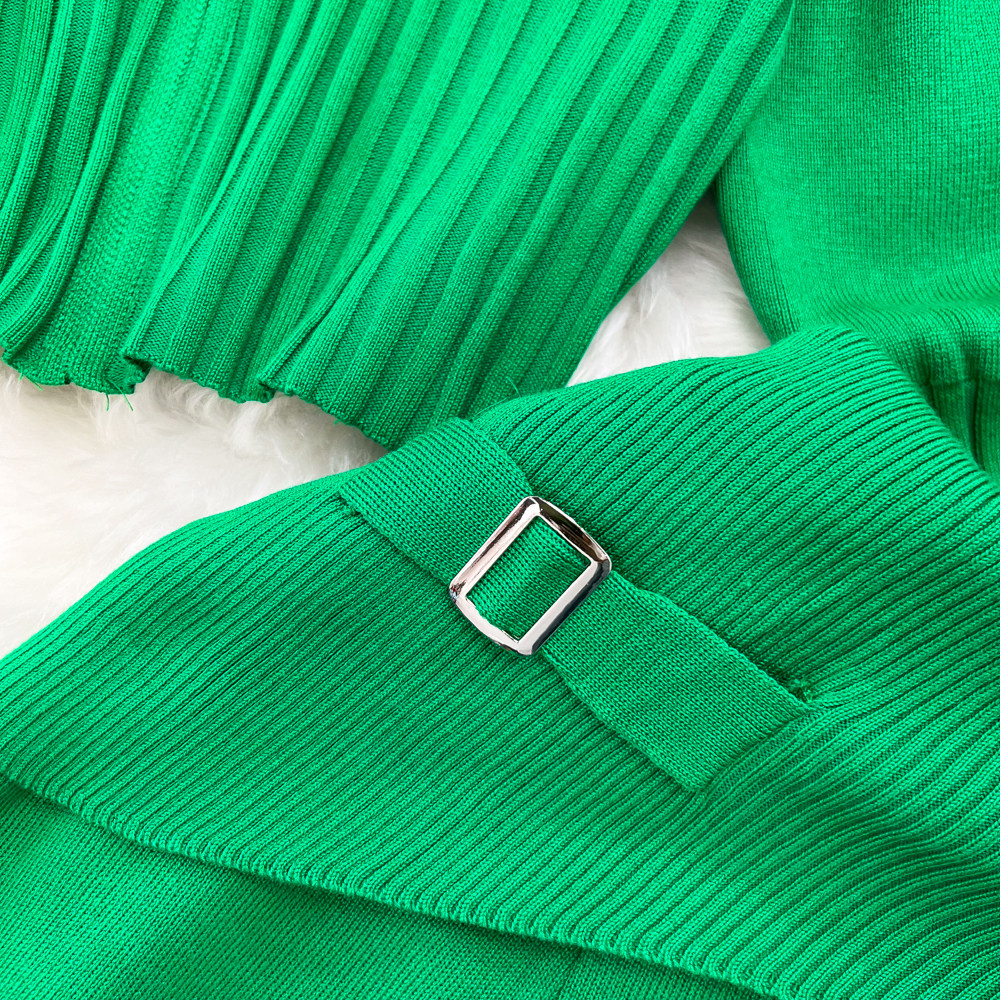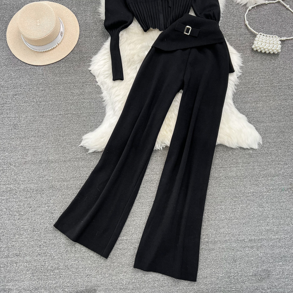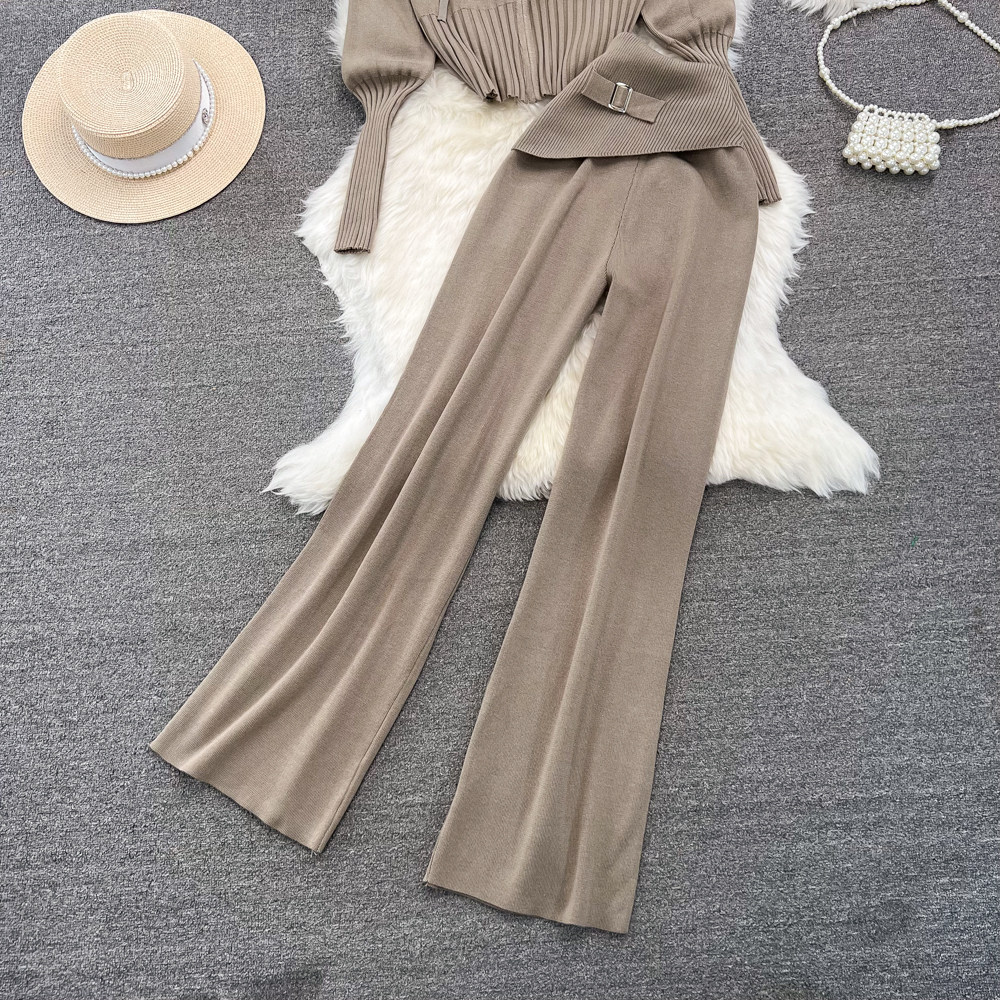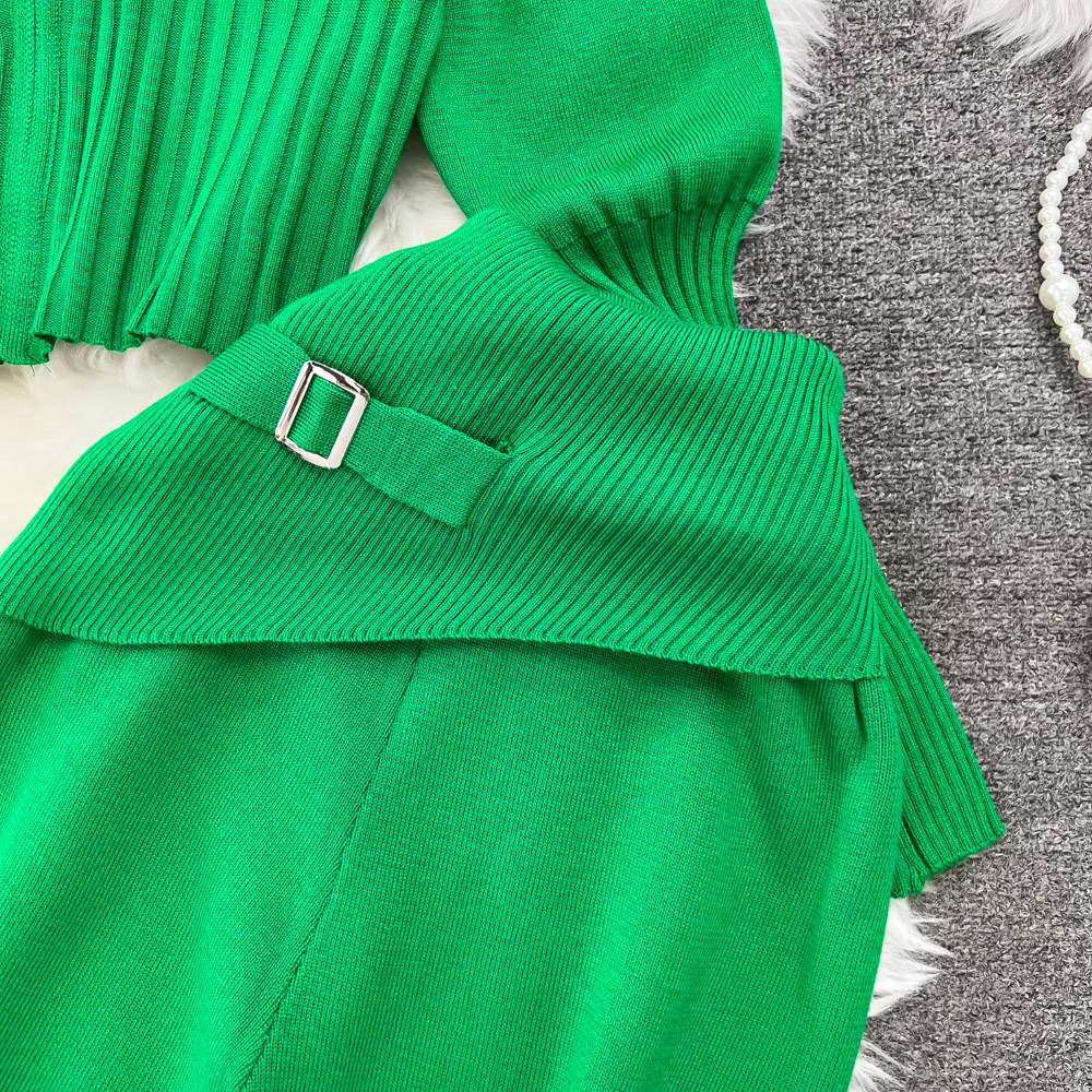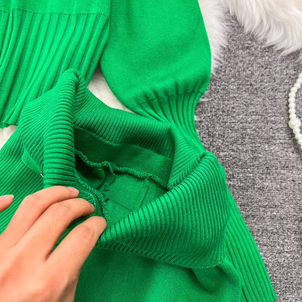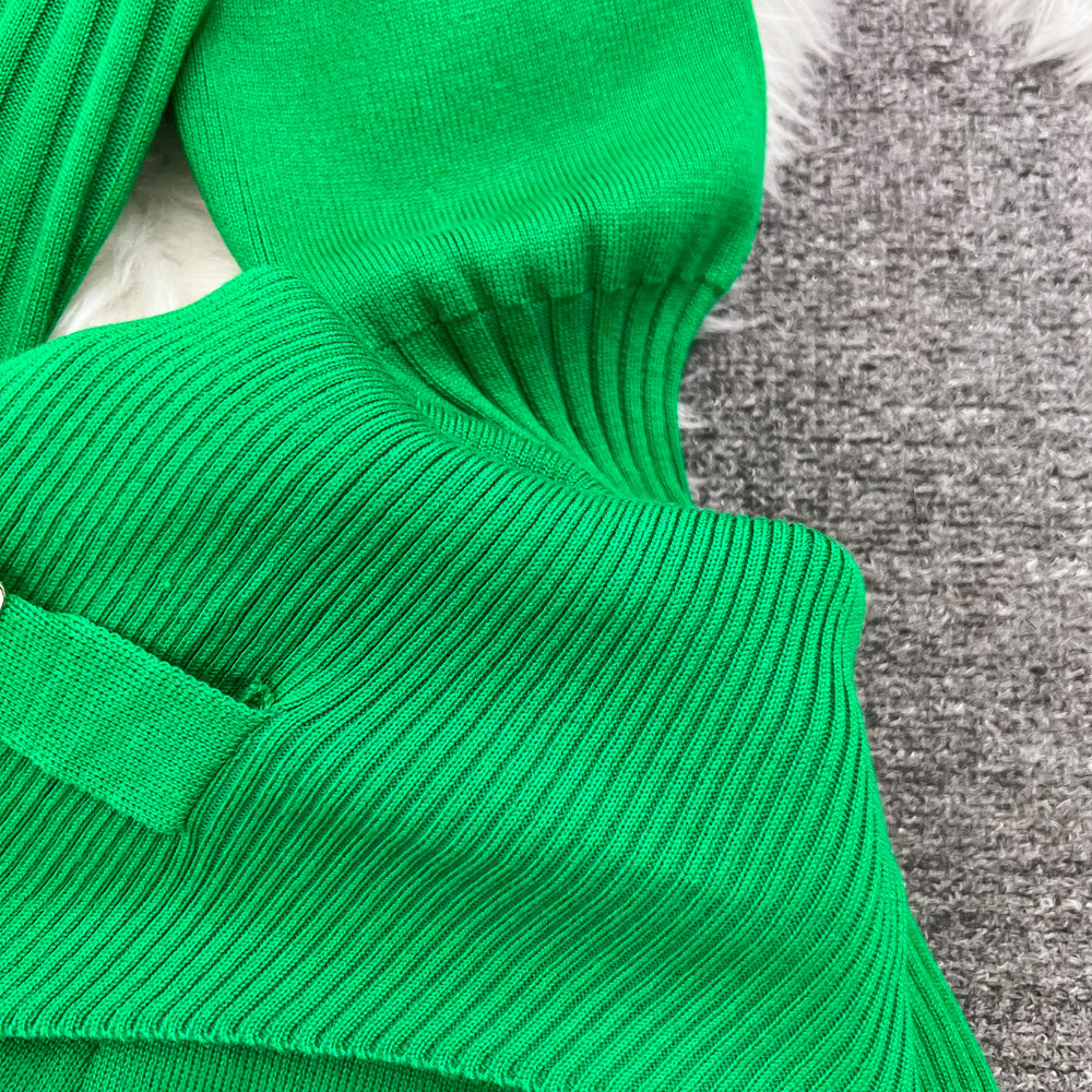 Комплект, лонгслив с молнией, трикотажное трикотажное платье, толстовка с капюшоном, приталенные штаны, в корейском стиле, высокая талия