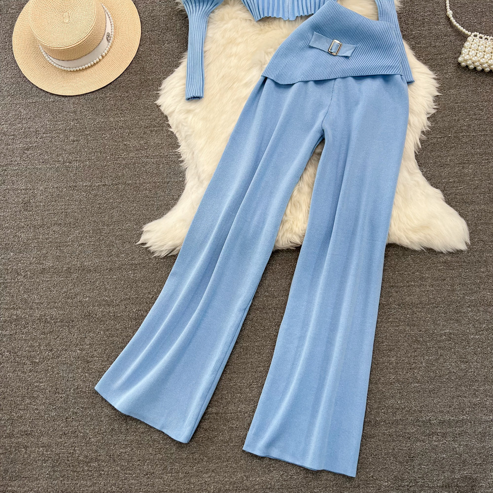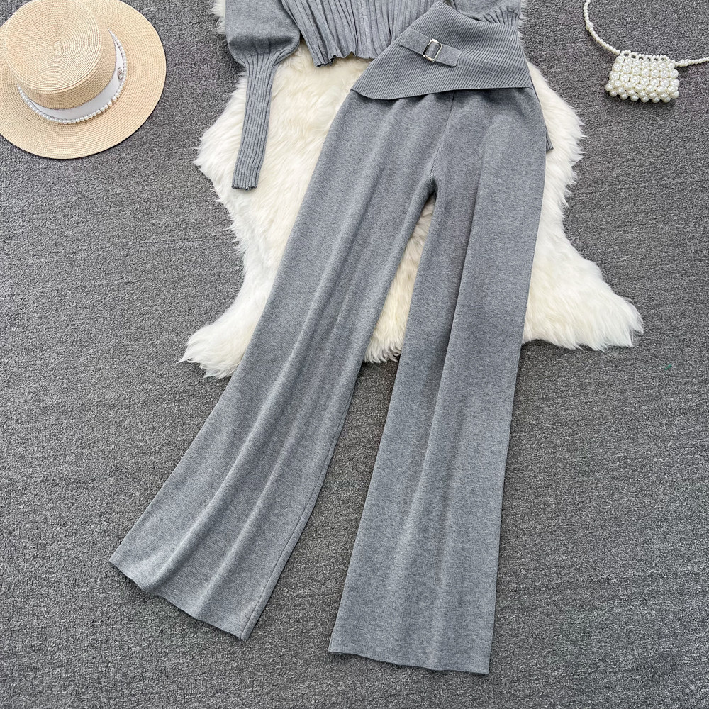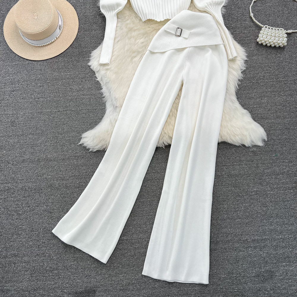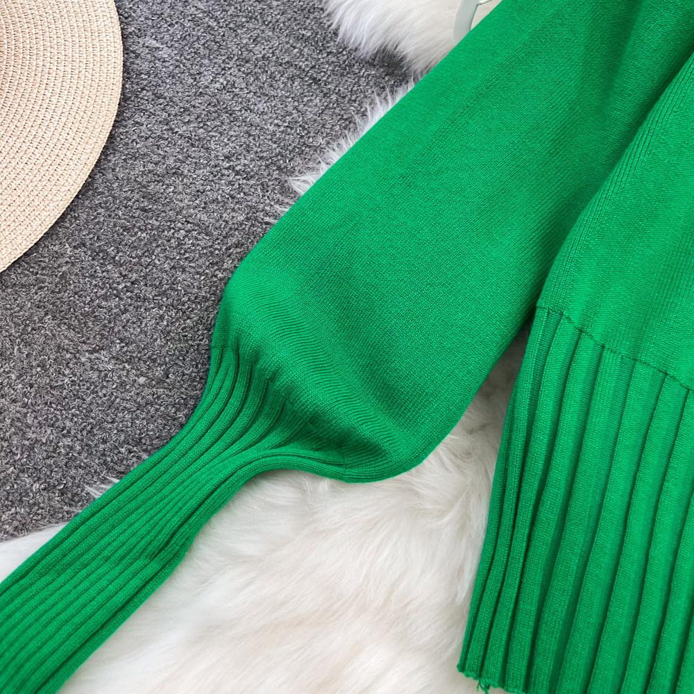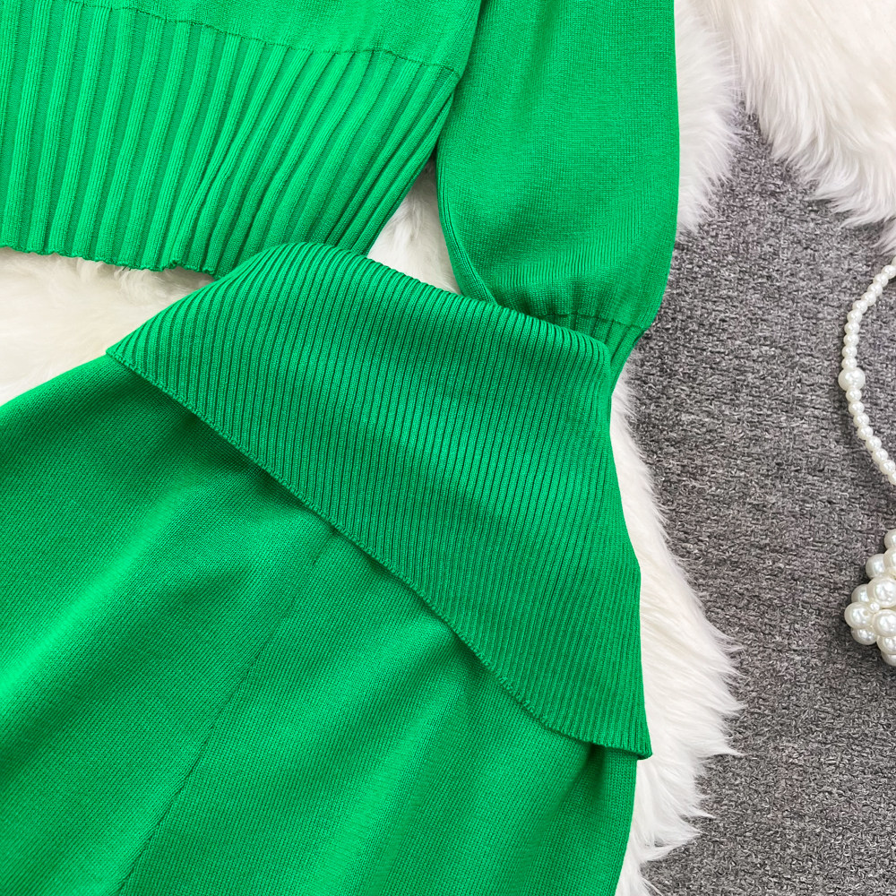 Комплект, лонгслив с молнией, трикотажное трикотажное платье, толстовка с капюшоном, приталенные штаны, в корейском стиле, высокая талия