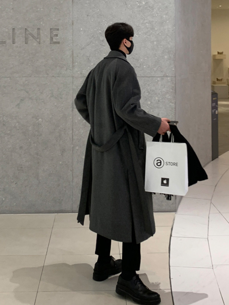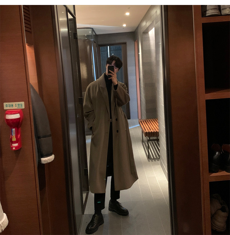 Демисезонное шерстяное пальто, длинная двусторонная кашемировая куртка, увеличенная толщина, средней длины, в корейском стиле