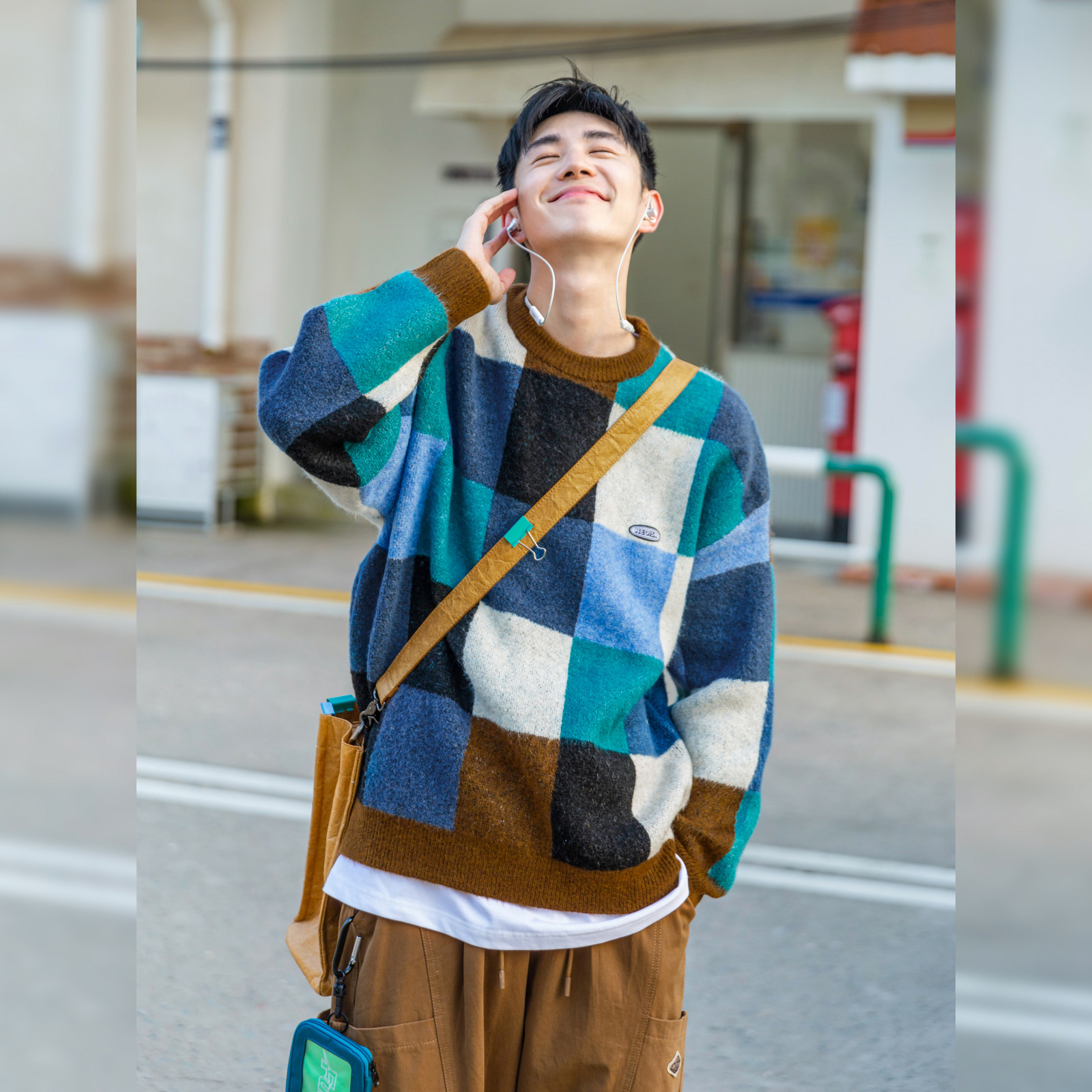 Цветной свитер, демисезонные трикотажные шахматы с круглым воротником для влюбленных