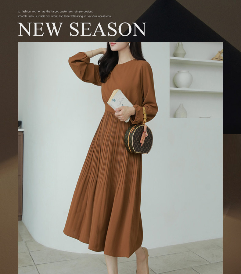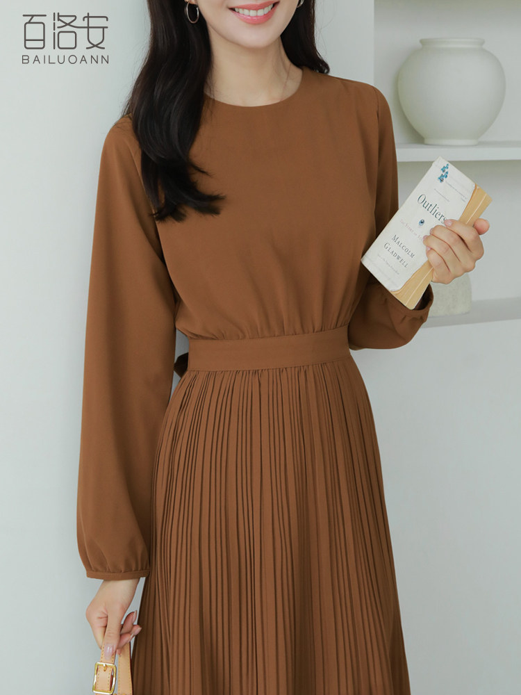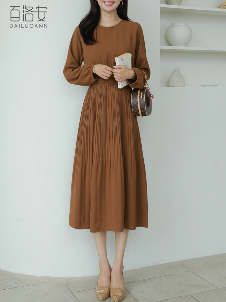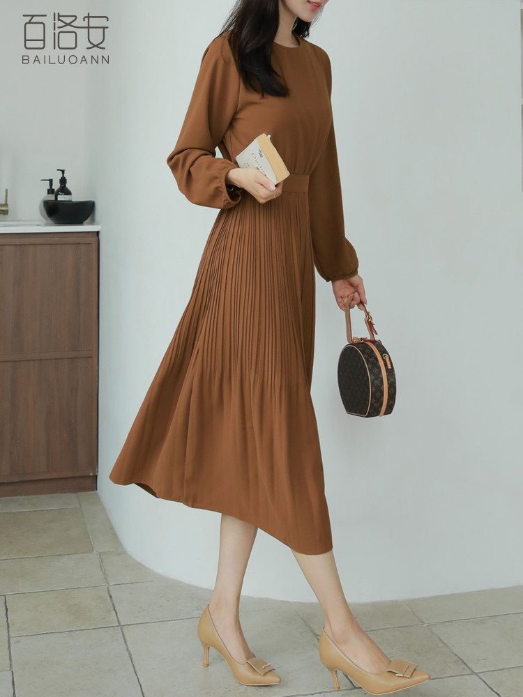 Весеннее платье с круглым воротником, лонгслив, длинная юбка, А-силуэт, высокая талия, длина макси