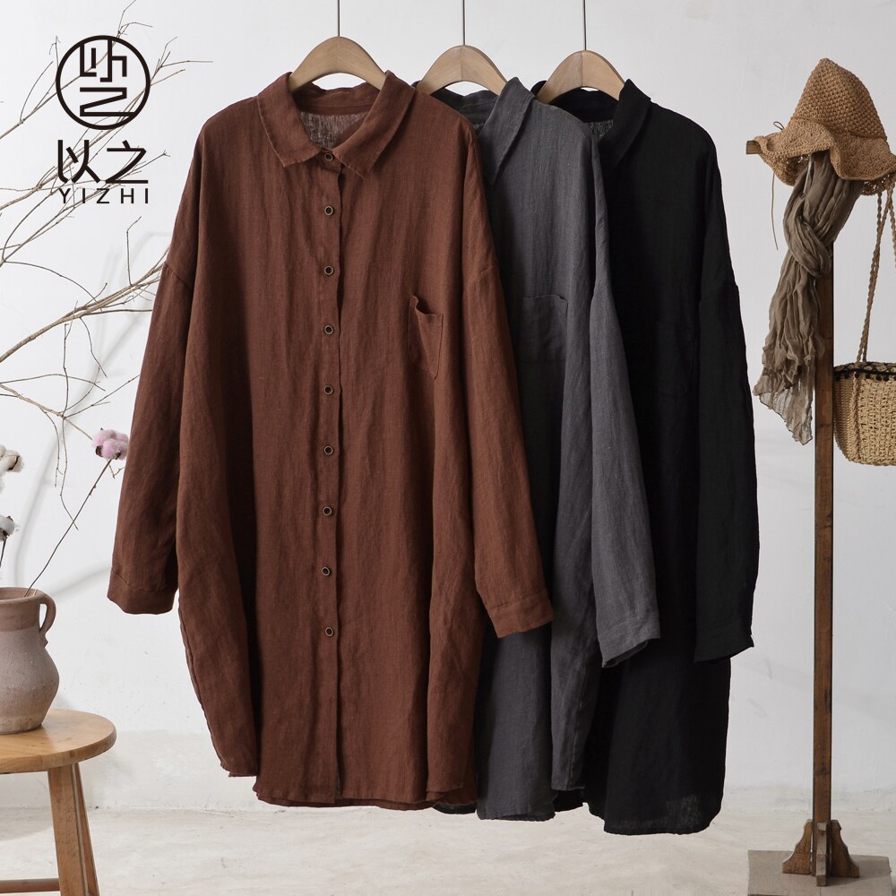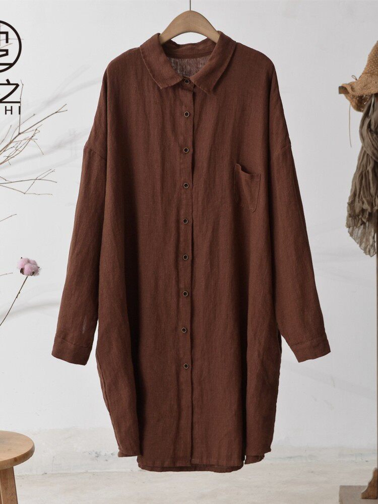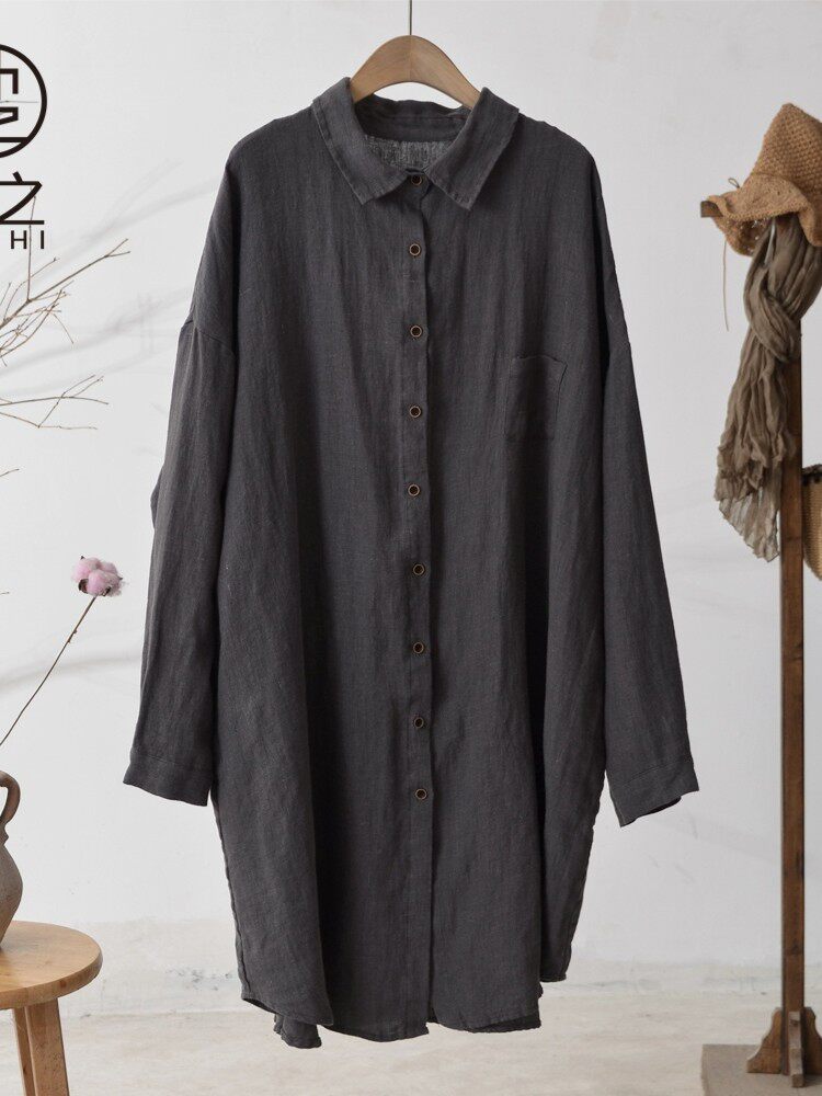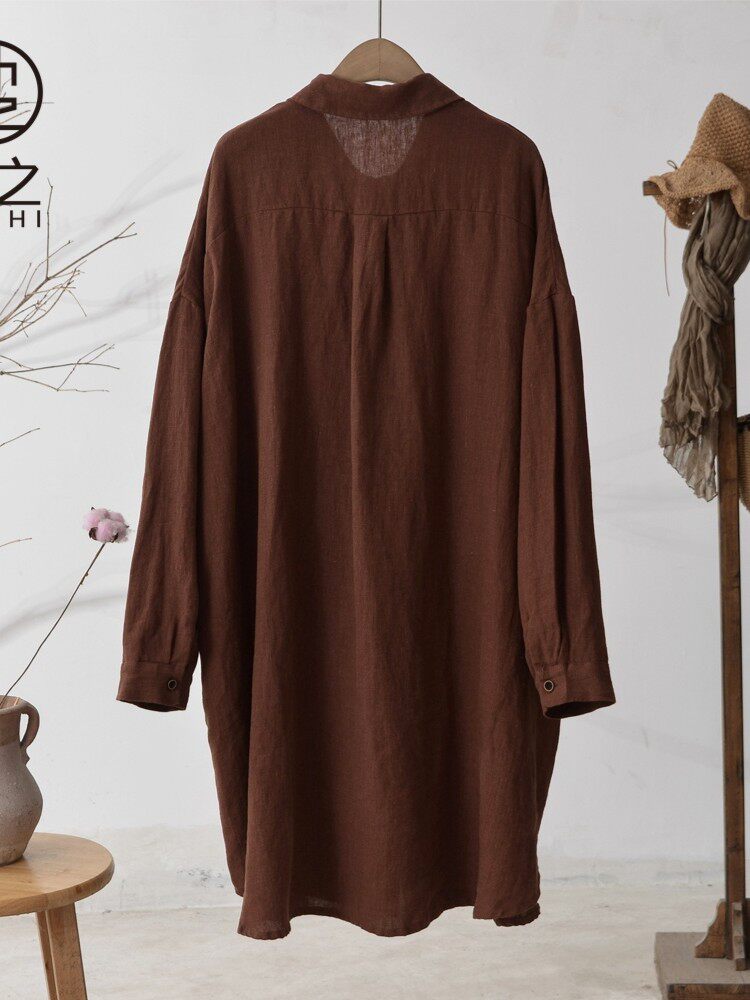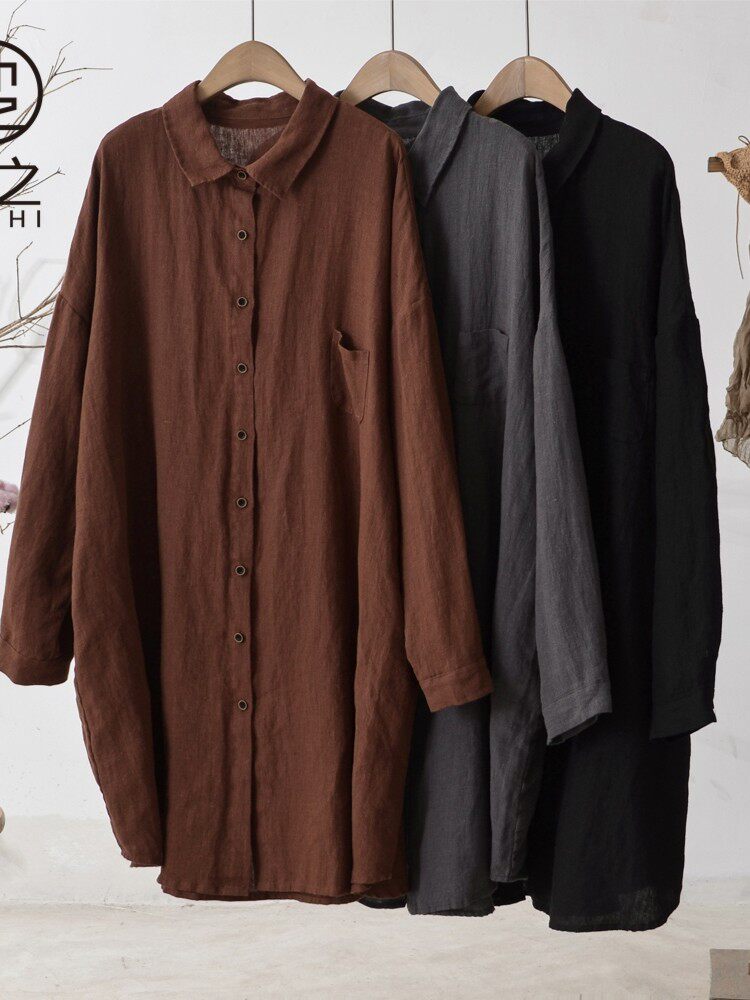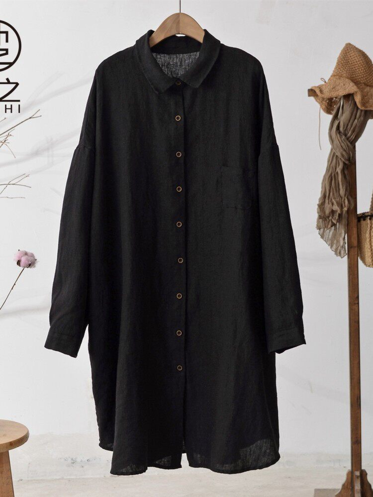 Осенняя однотонная длинная рубашка, средней длины