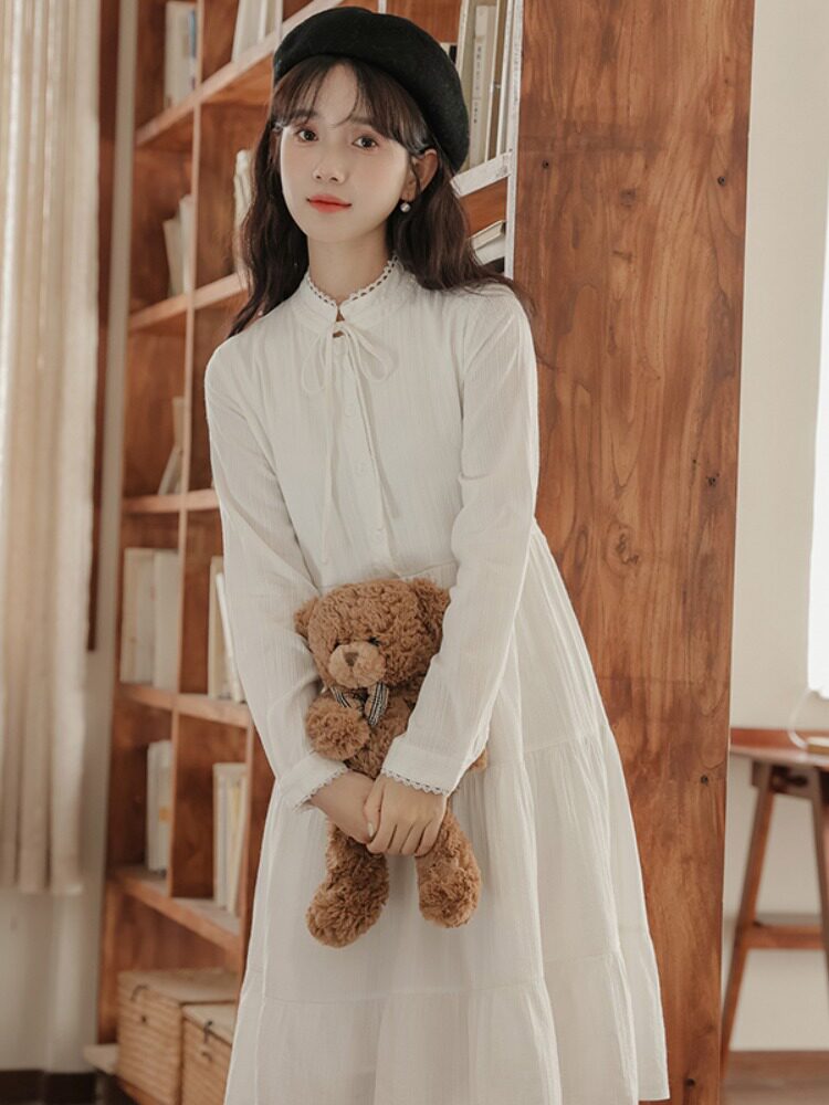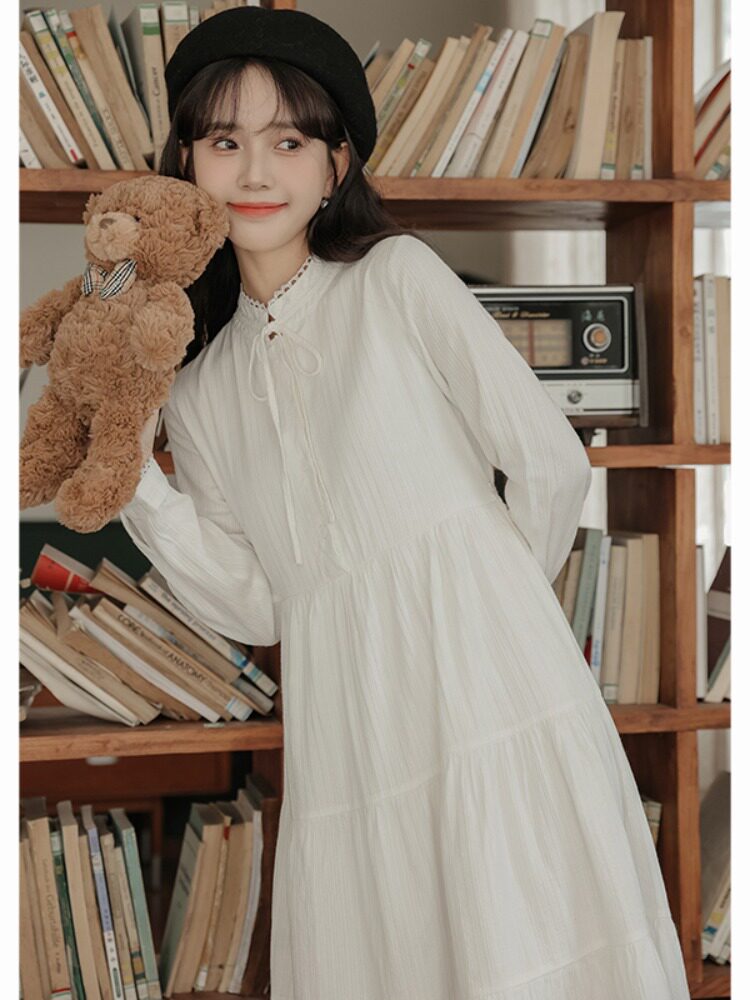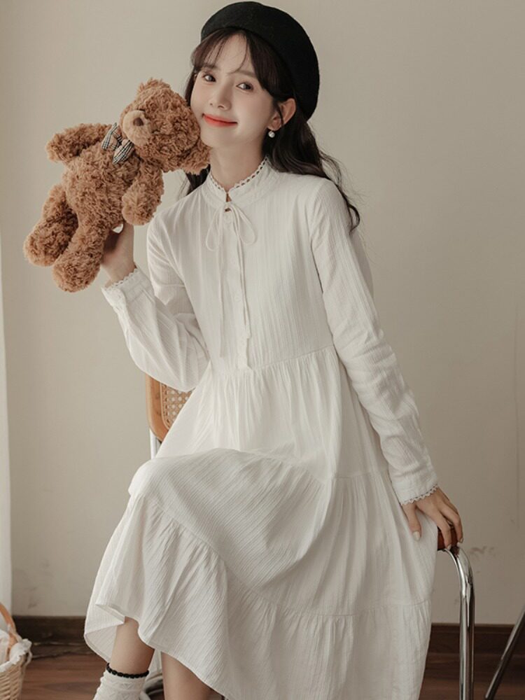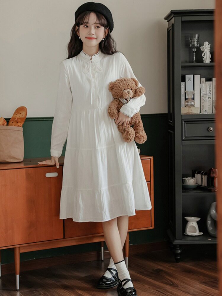 Белое весеннее платье, милая базовая юбка, подходит для подростков, тренд сезона