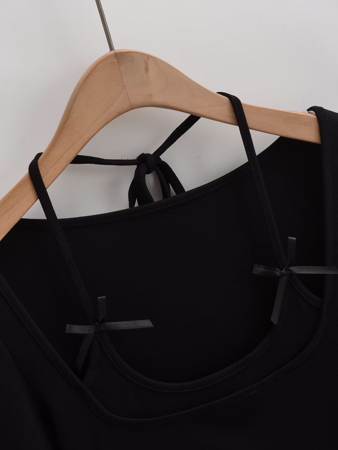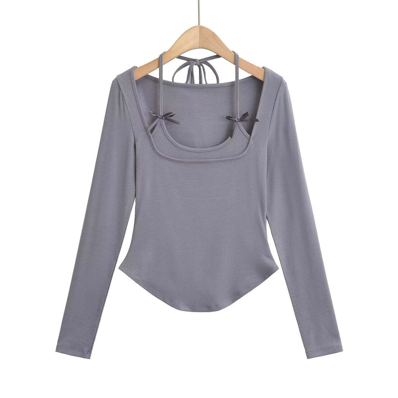 Изогнутый лонгслив с бантиком, европейский стиль, облегающий крой