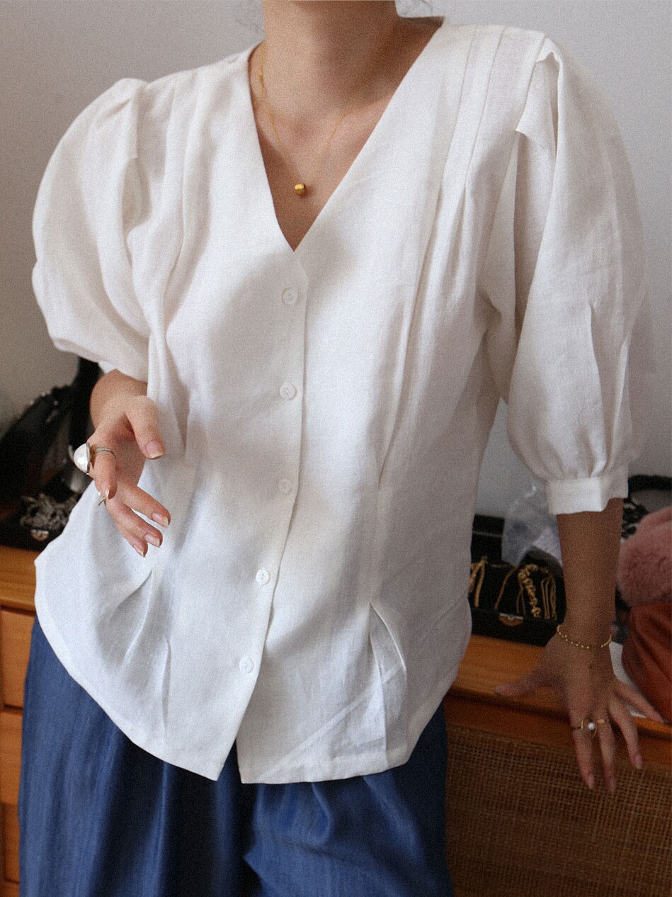 Корсет, модная рубашка, V-образный вырез, по фигуре, рукава фонарики