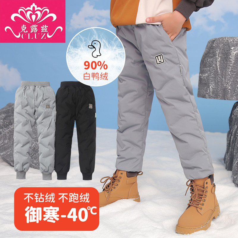 Зимние водонепроницаемые утепленные детские штаны для мальчиков с пухом для отдыха, утиный пух, подходит для подростков