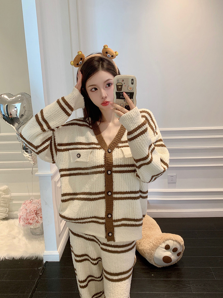 Японская зимняя коралловая бархатная утепленная пижама