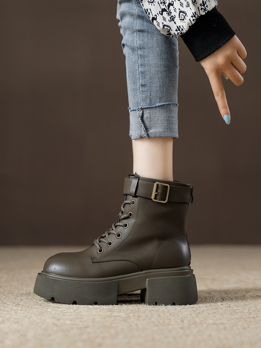 Martens, осенние короткие сапоги с молнией для отдыха, популярно в интернете, из натуральной кожи, 2023