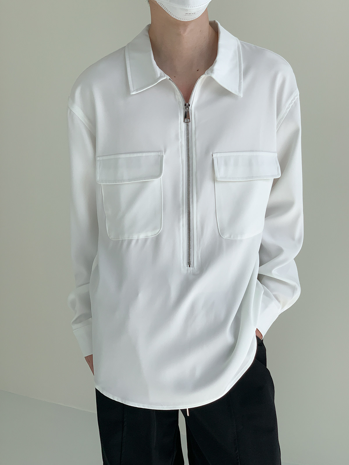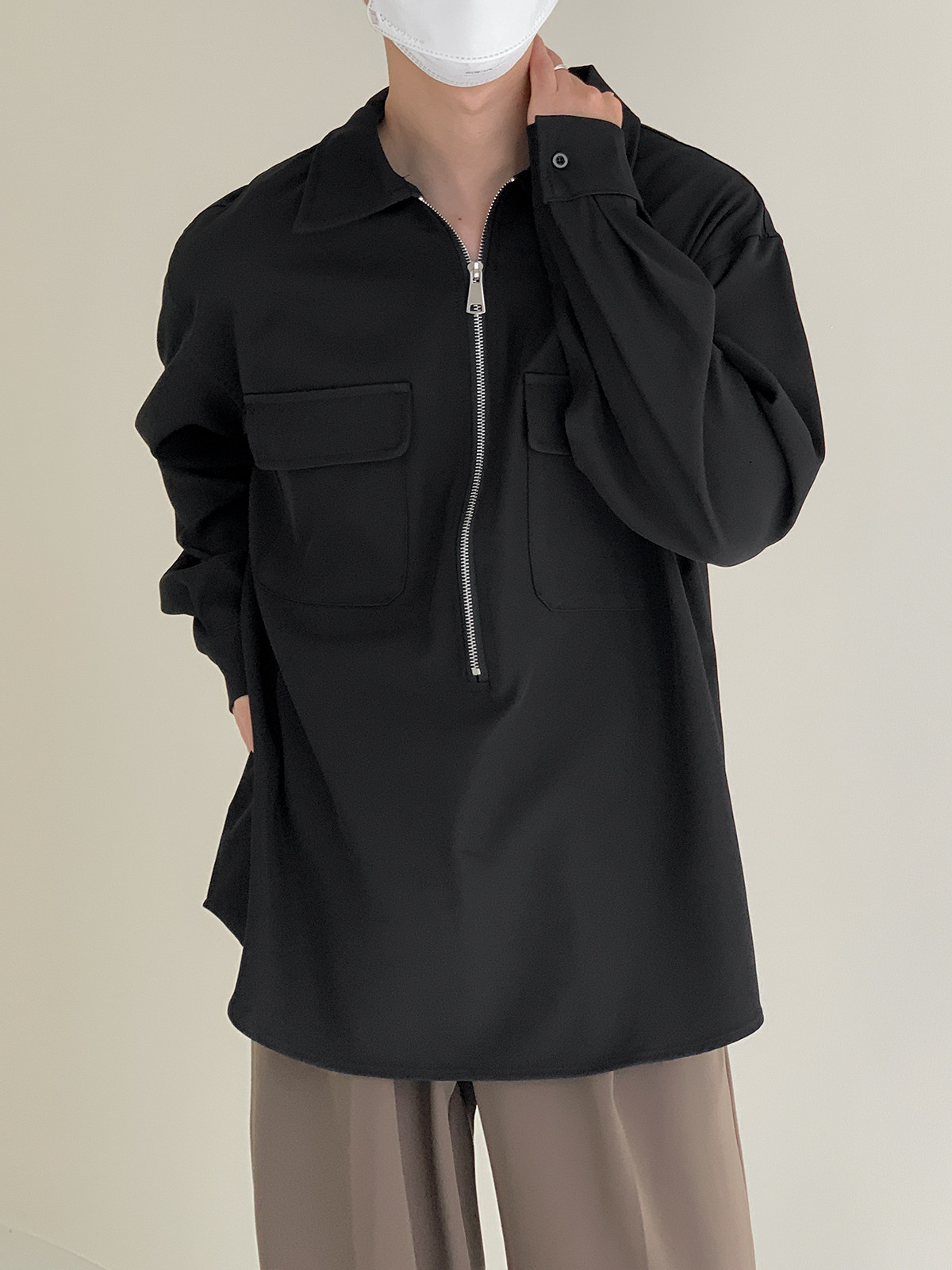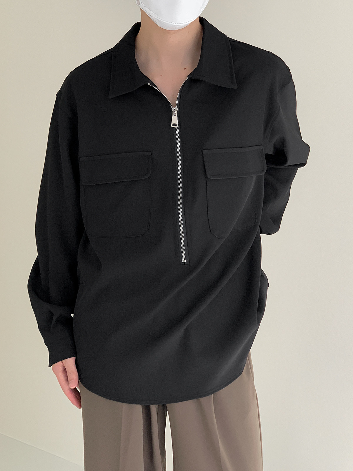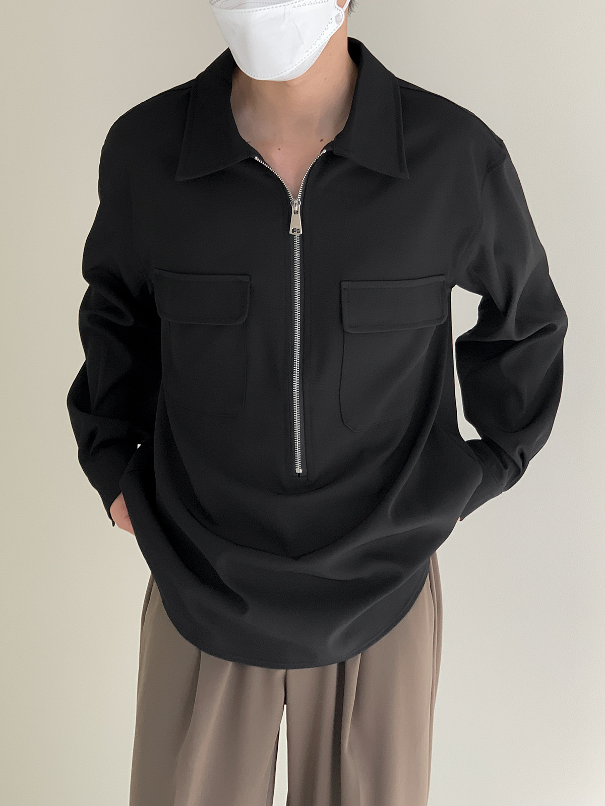 Лонгслив с молнией, осенняя минималистичная базовая футболка polo, свободный крой