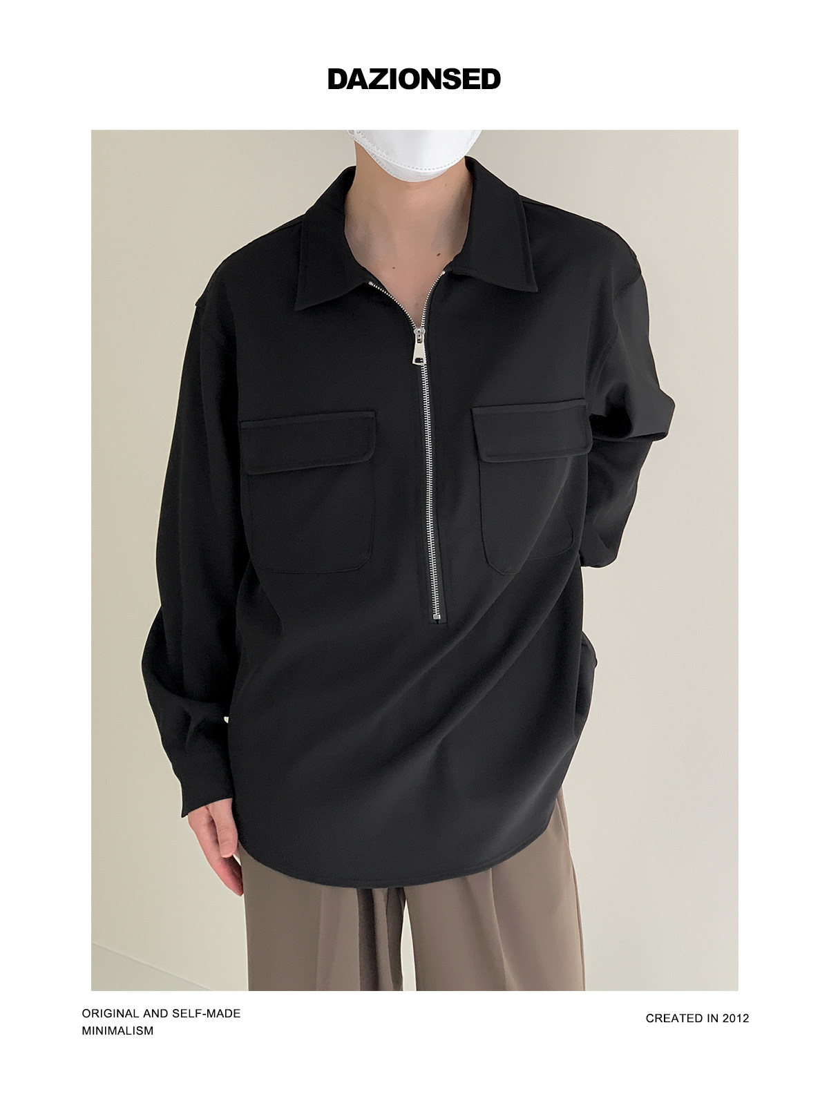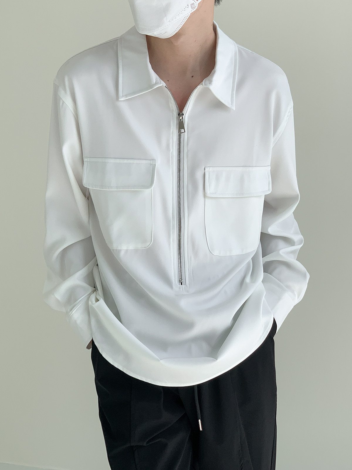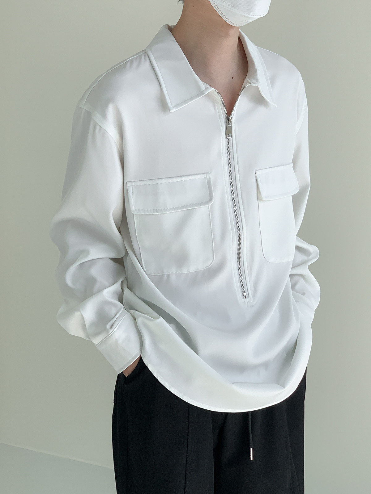 Лонгслив с молнией, осенняя минималистичная базовая футболка polo, свободный крой