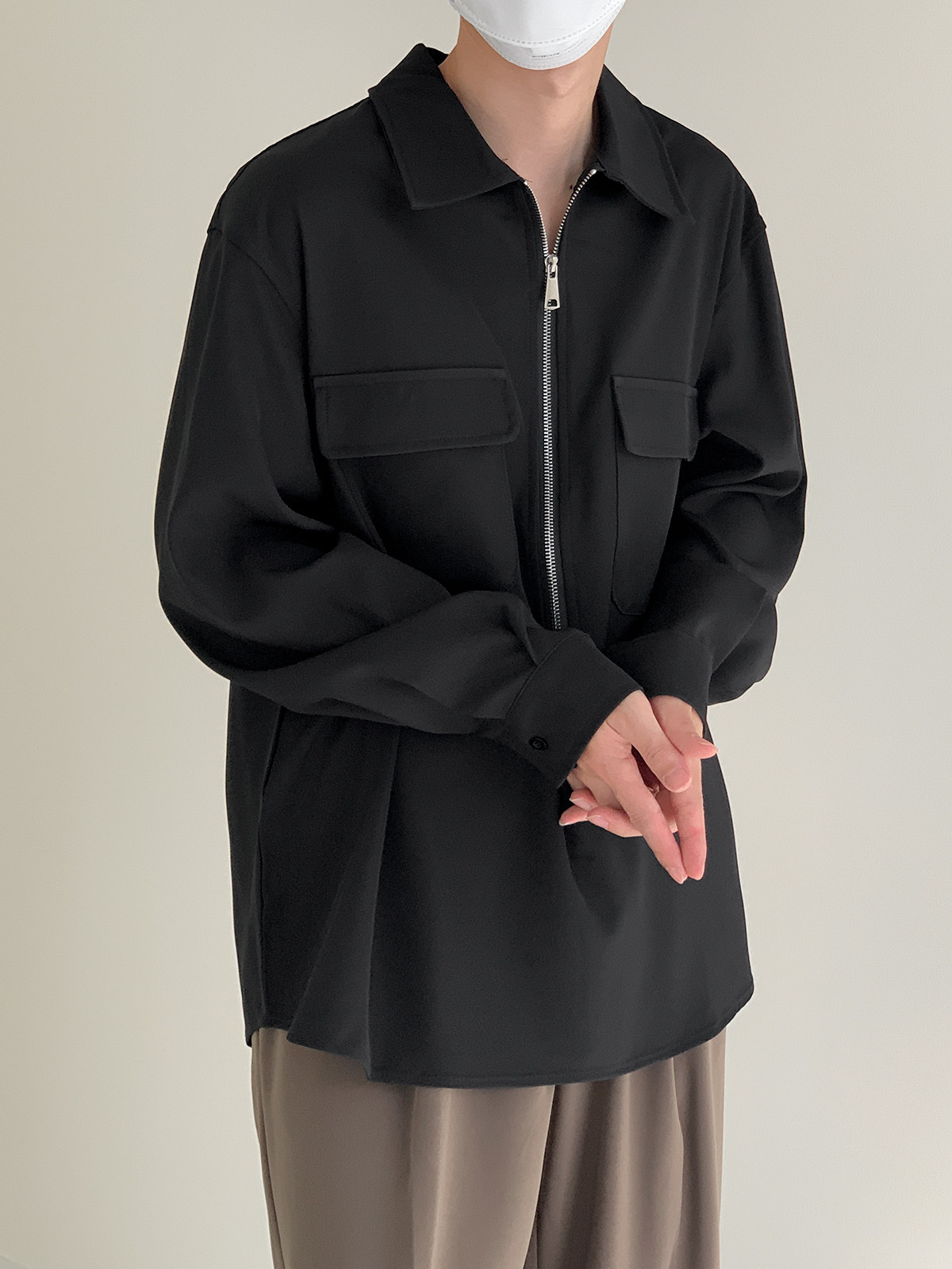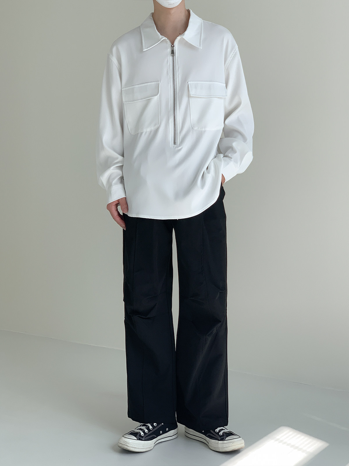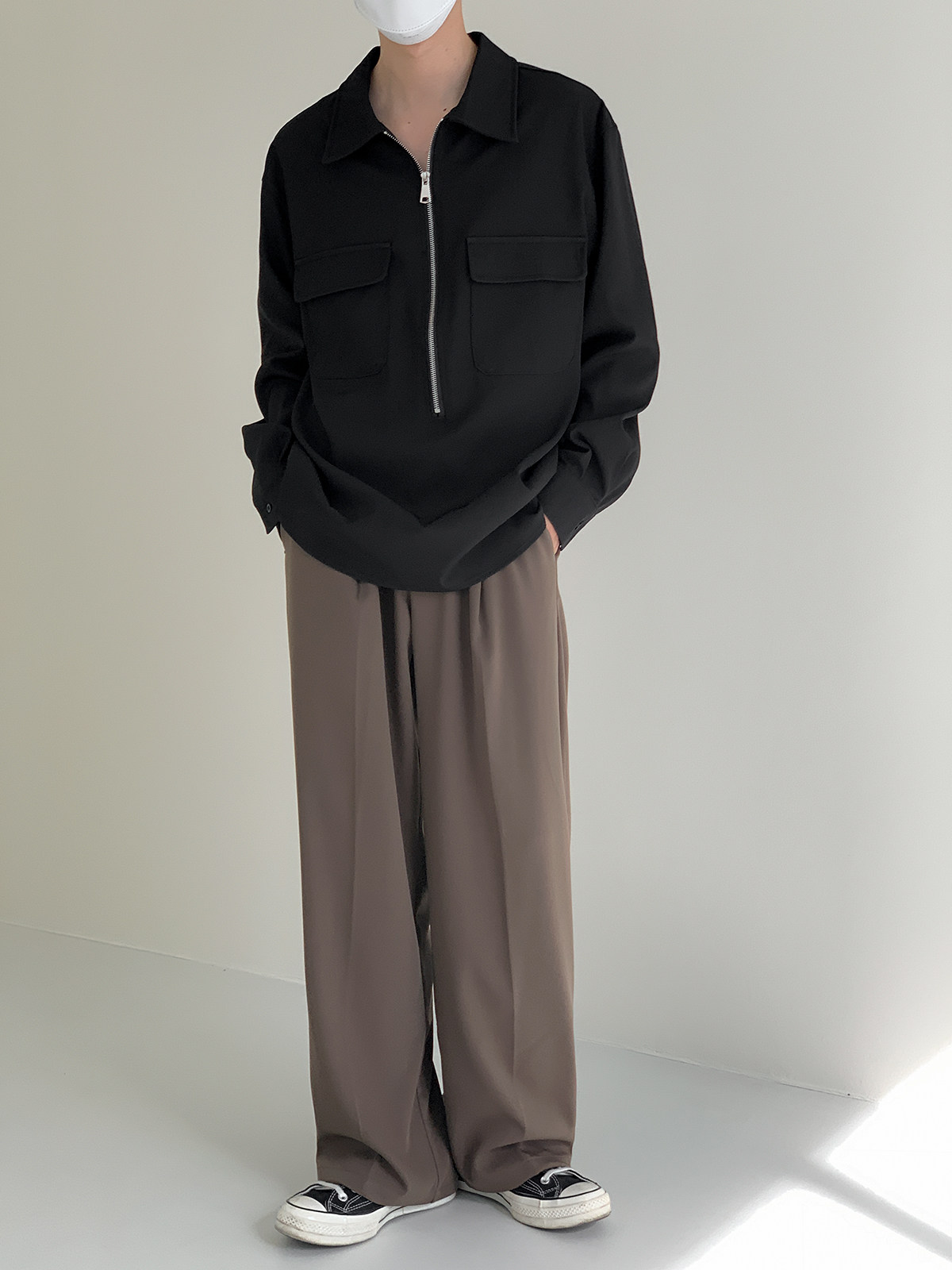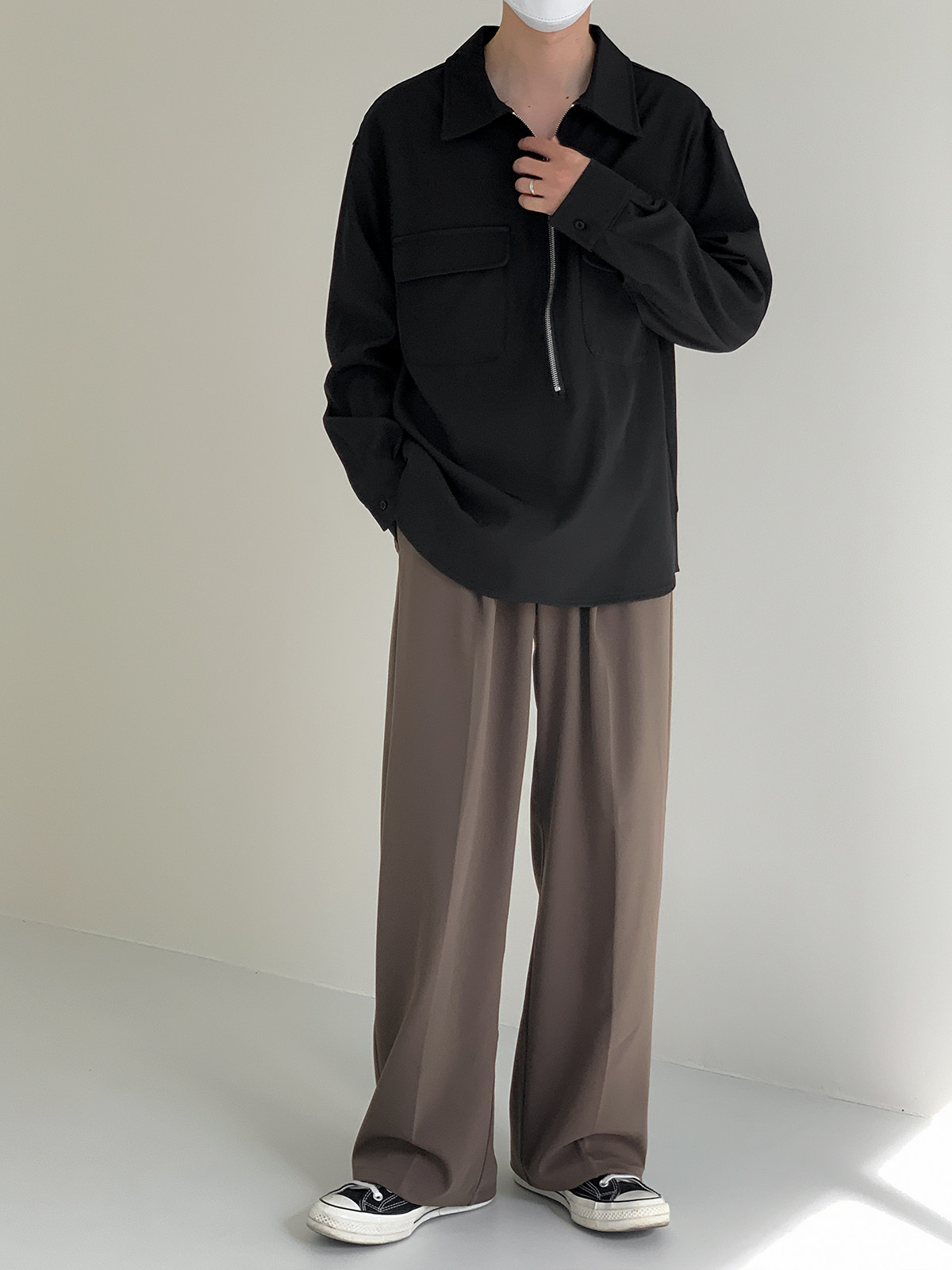 Лонгслив с молнией, осенняя минималистичная базовая футболка polo, свободный крой