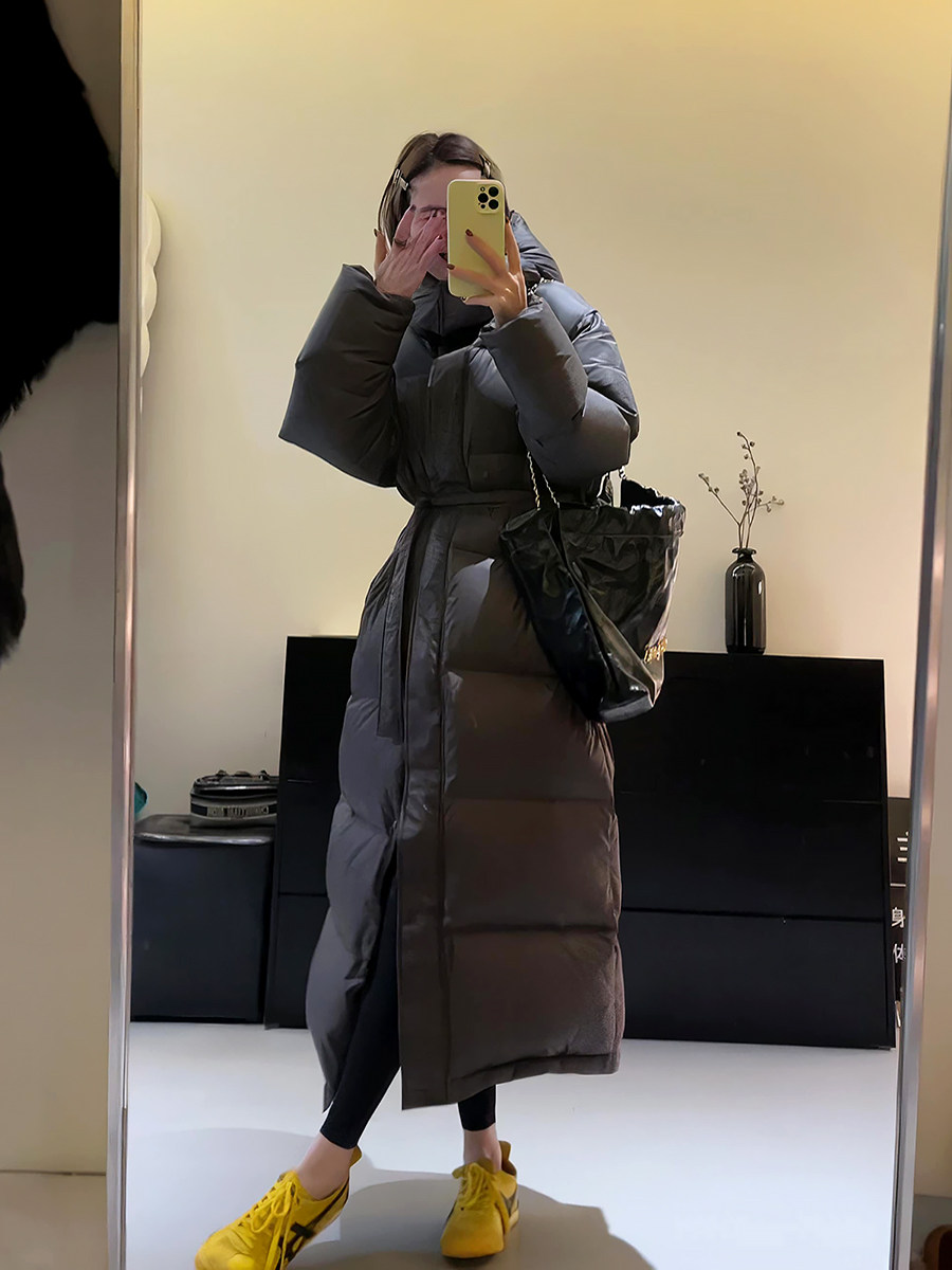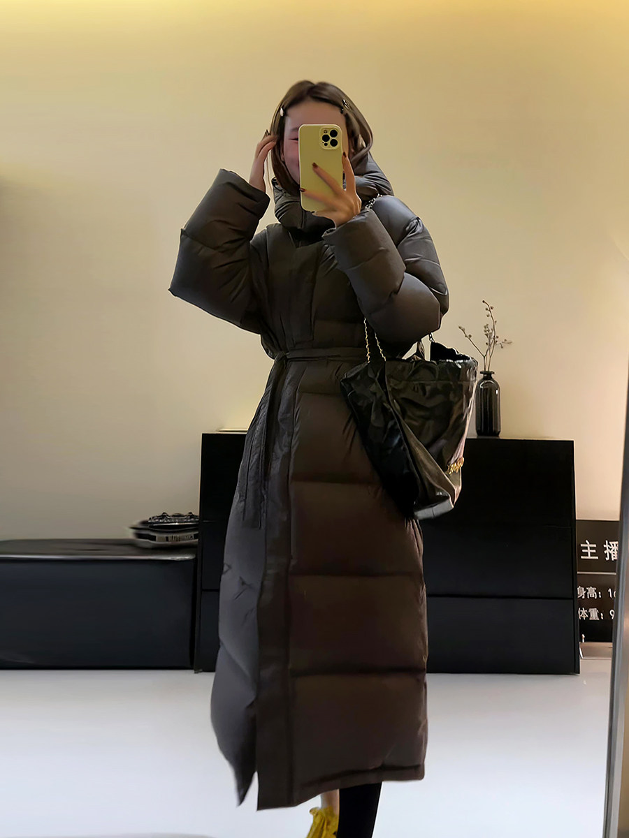 Утепленный модный длинный зимний пуховик с капюшоном с пухом, средней длины