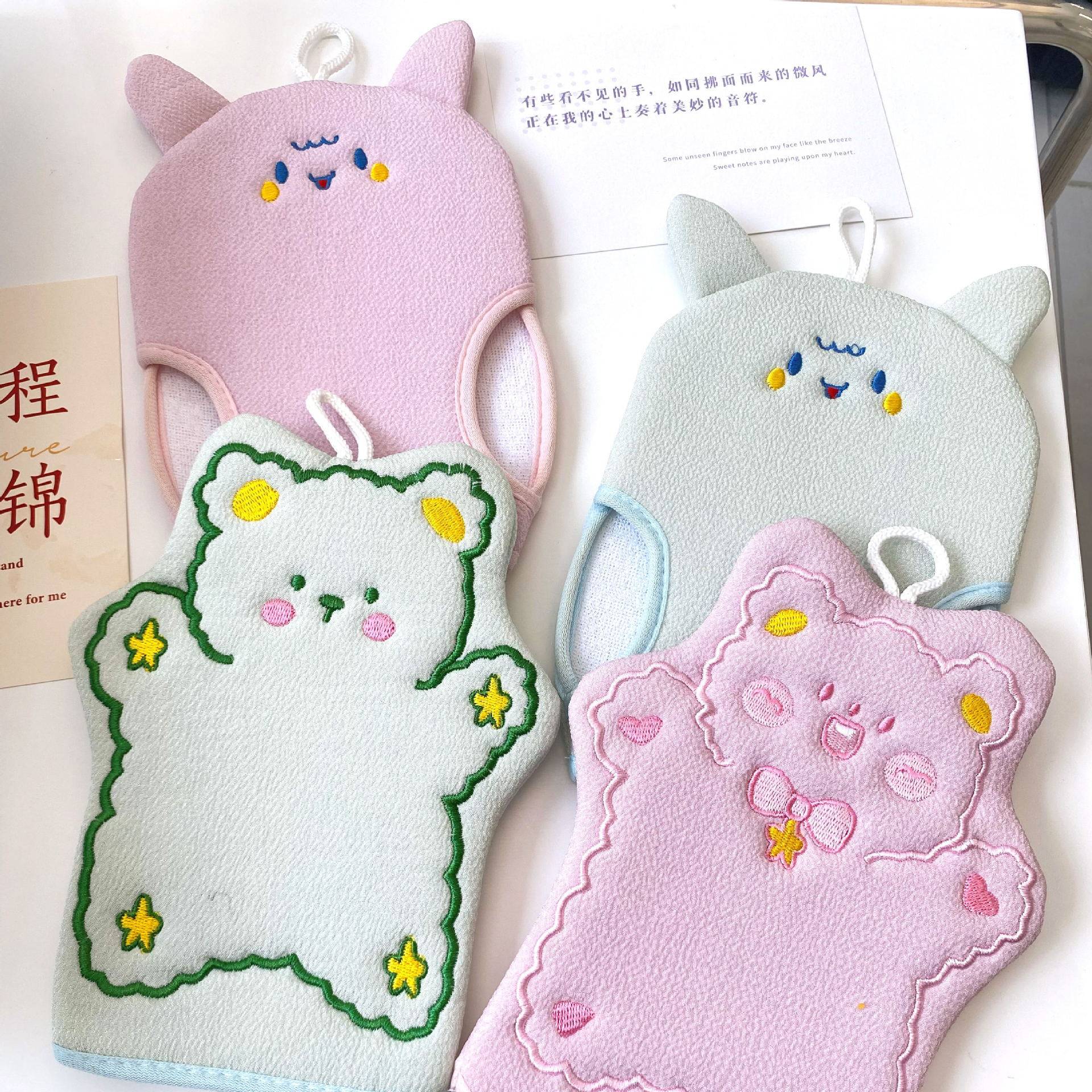Мультфильм потирая полотенце для ванны, растирание грязи, два использования спины, не боль, ванна, ванна, отшелушивающие артефакты, вышитые дети, потирая перчатки