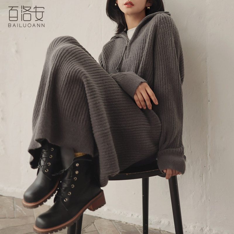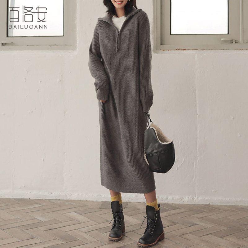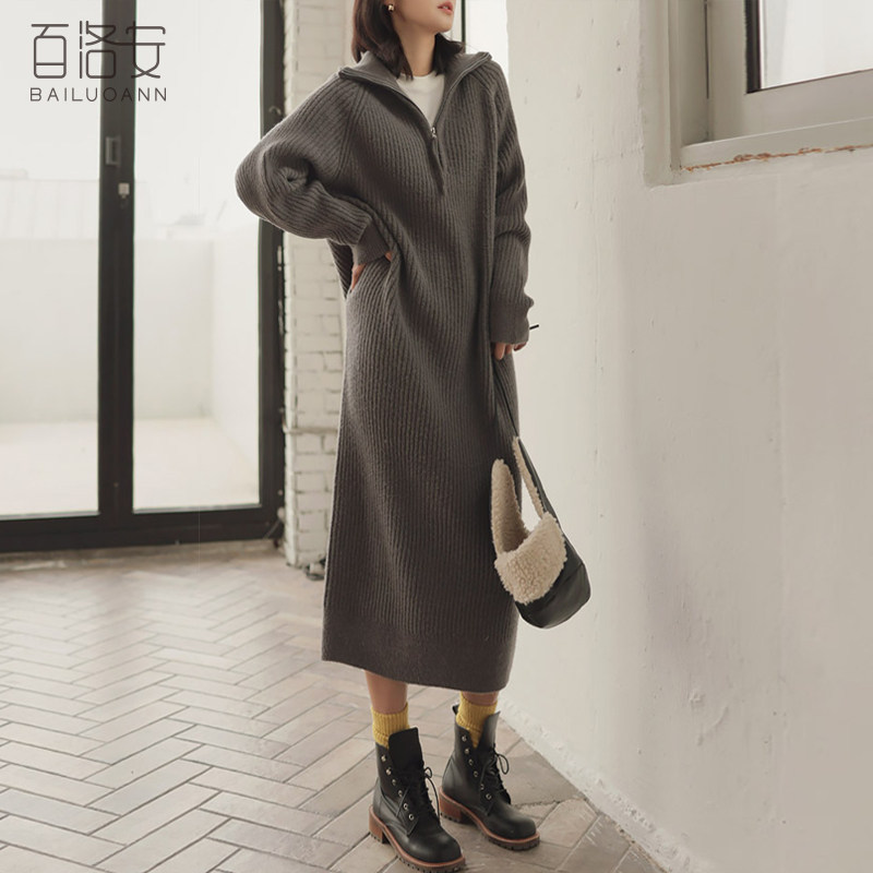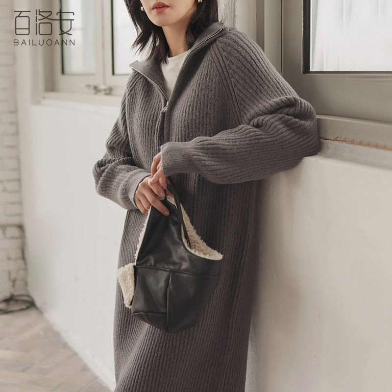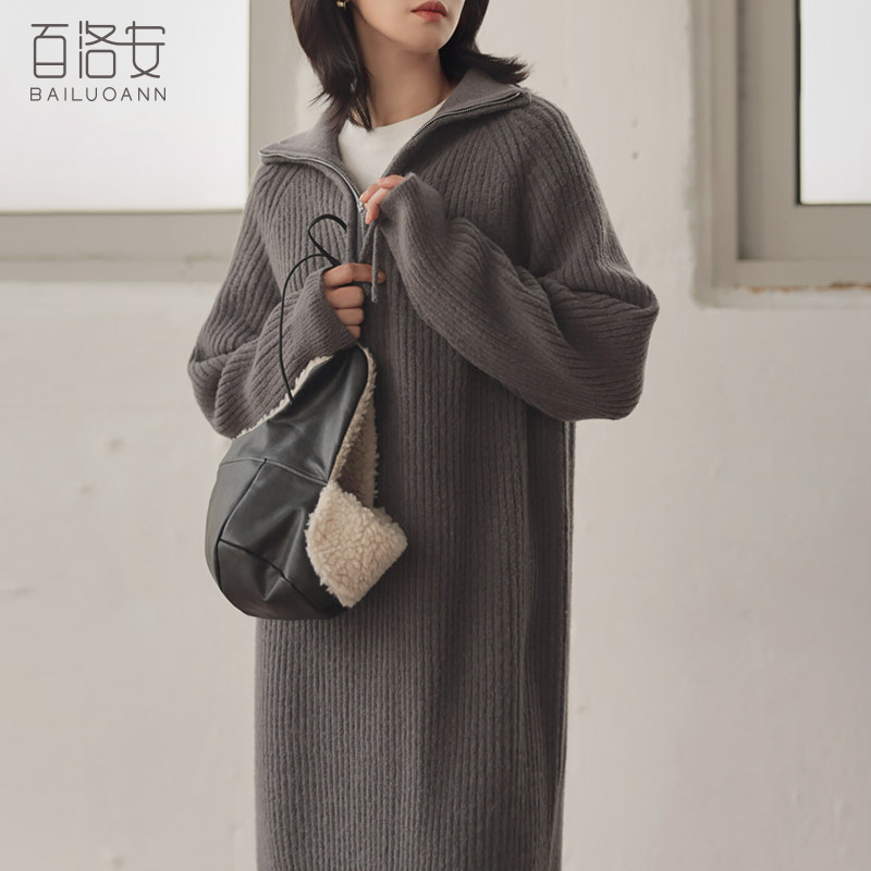 百洛安 Длинный базовый свитер, пуховик, лонгслив с молнией, оверсайз