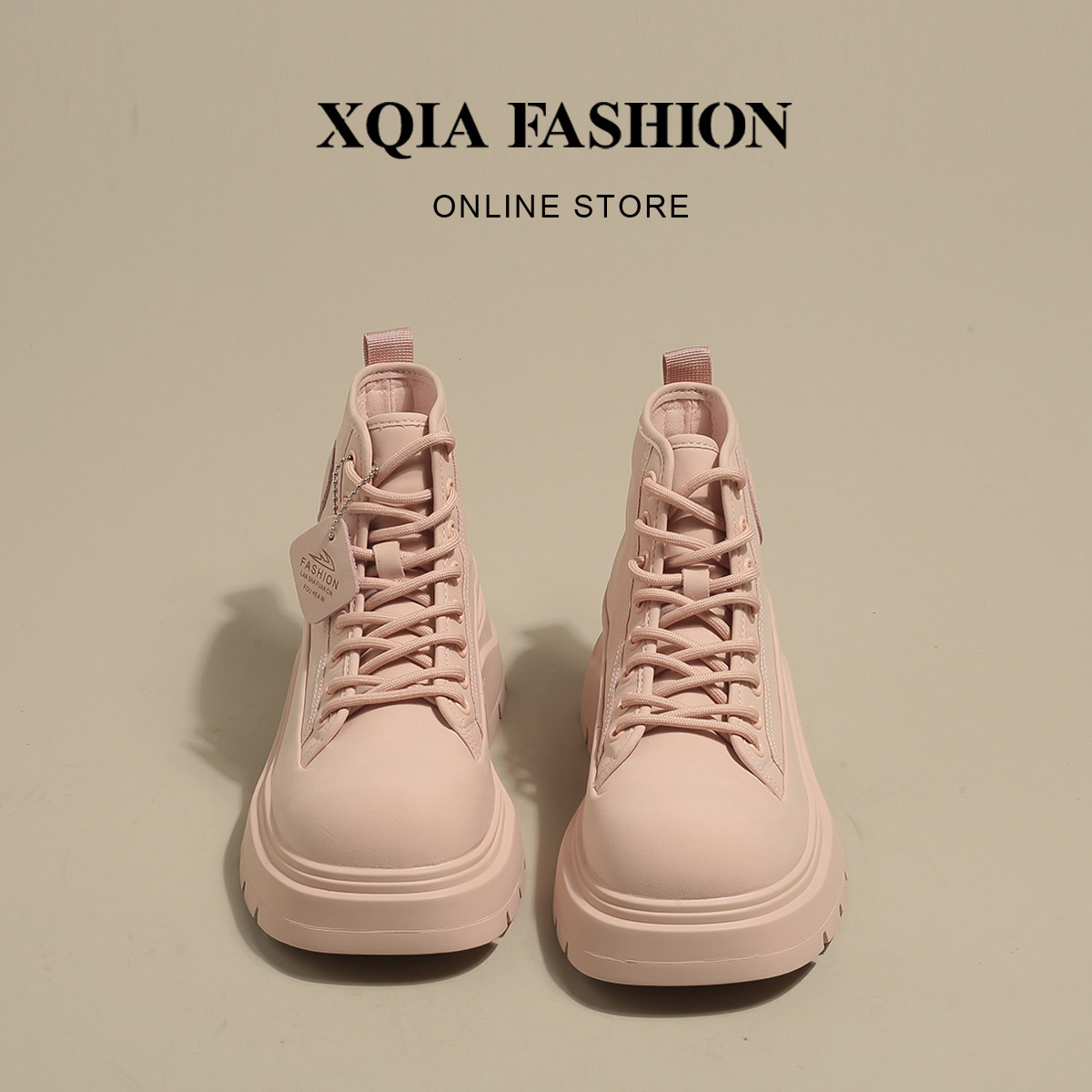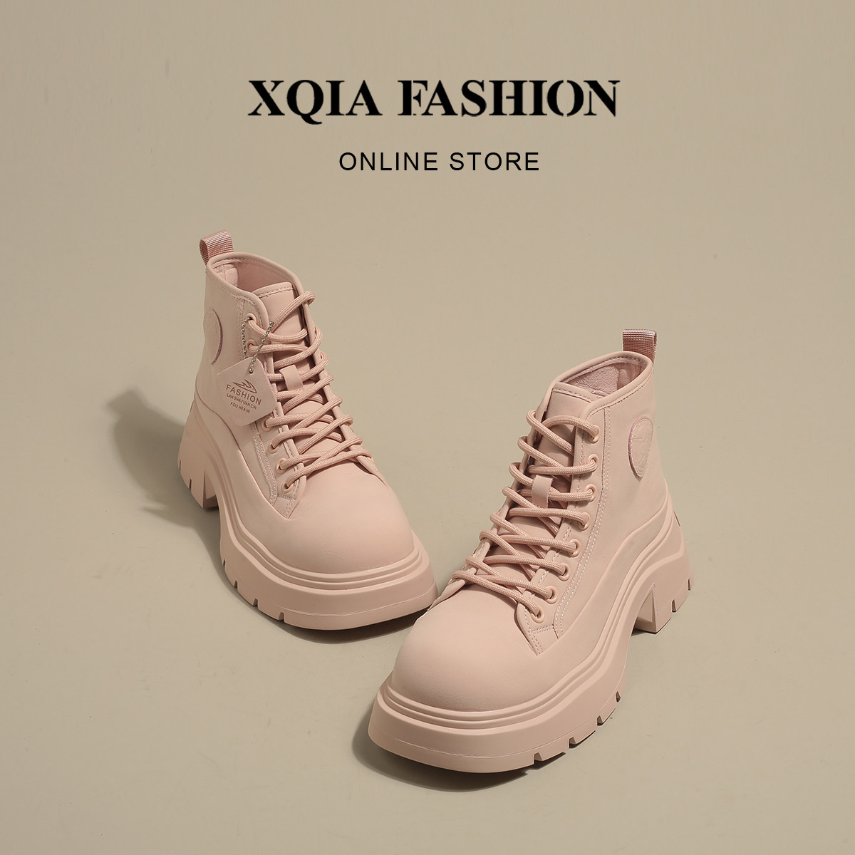 XQIA Milan Times ~ Популярные розовые супер-горячие женские ботинки Martin на толстой подошве с внутренней стороны, маленькие и тонкие ботинки в стиле вестерн
