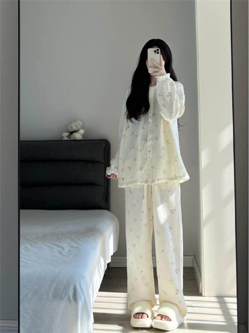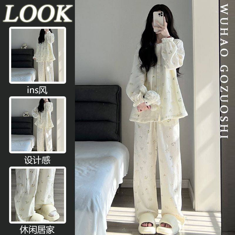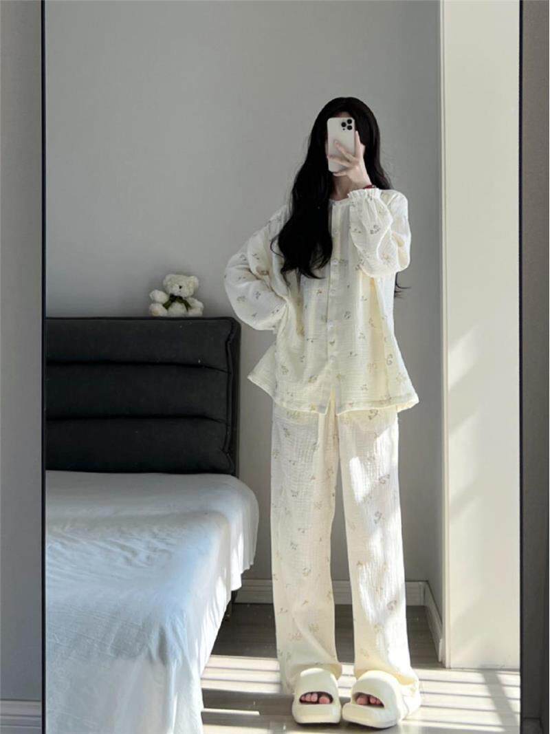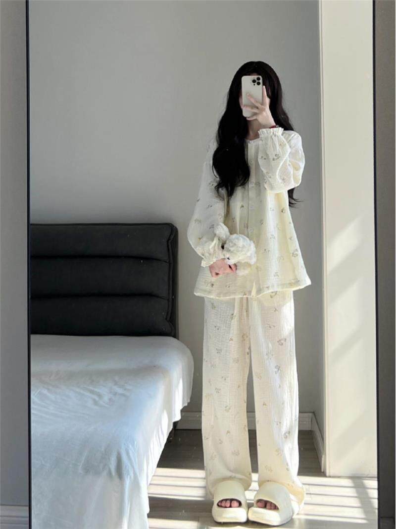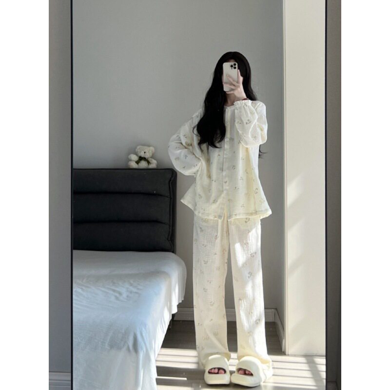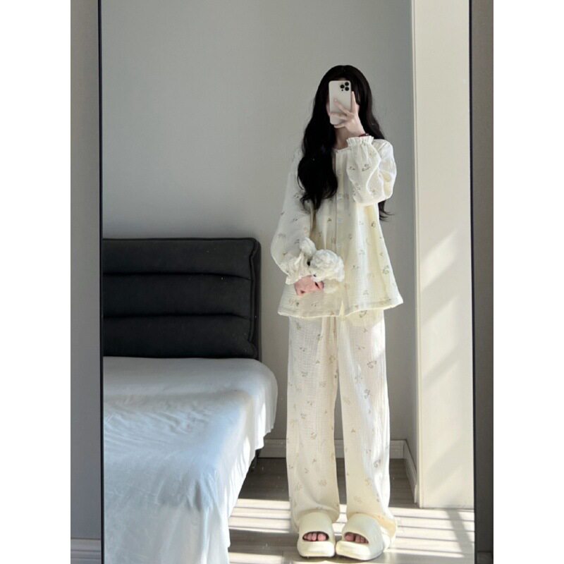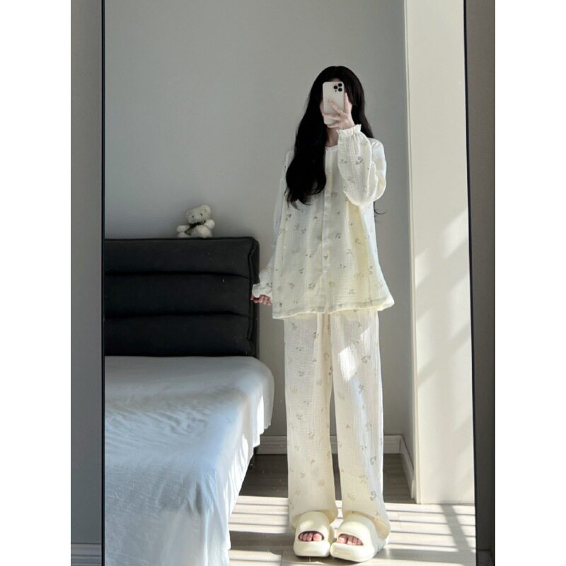 Брендовая японская милая осенняя демисезонная пижама, тонкий лонгслив для школьников и студентов, комплект, цветочный принт
