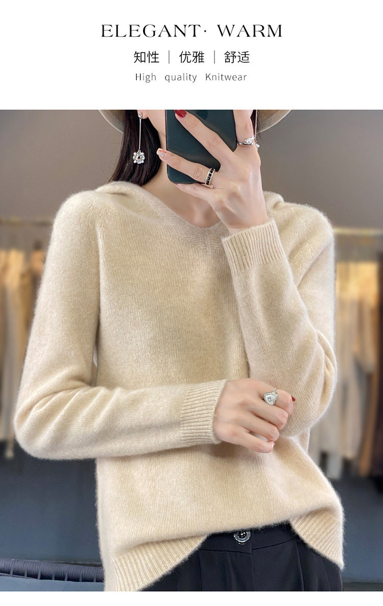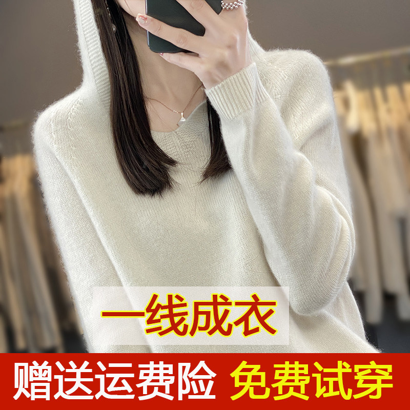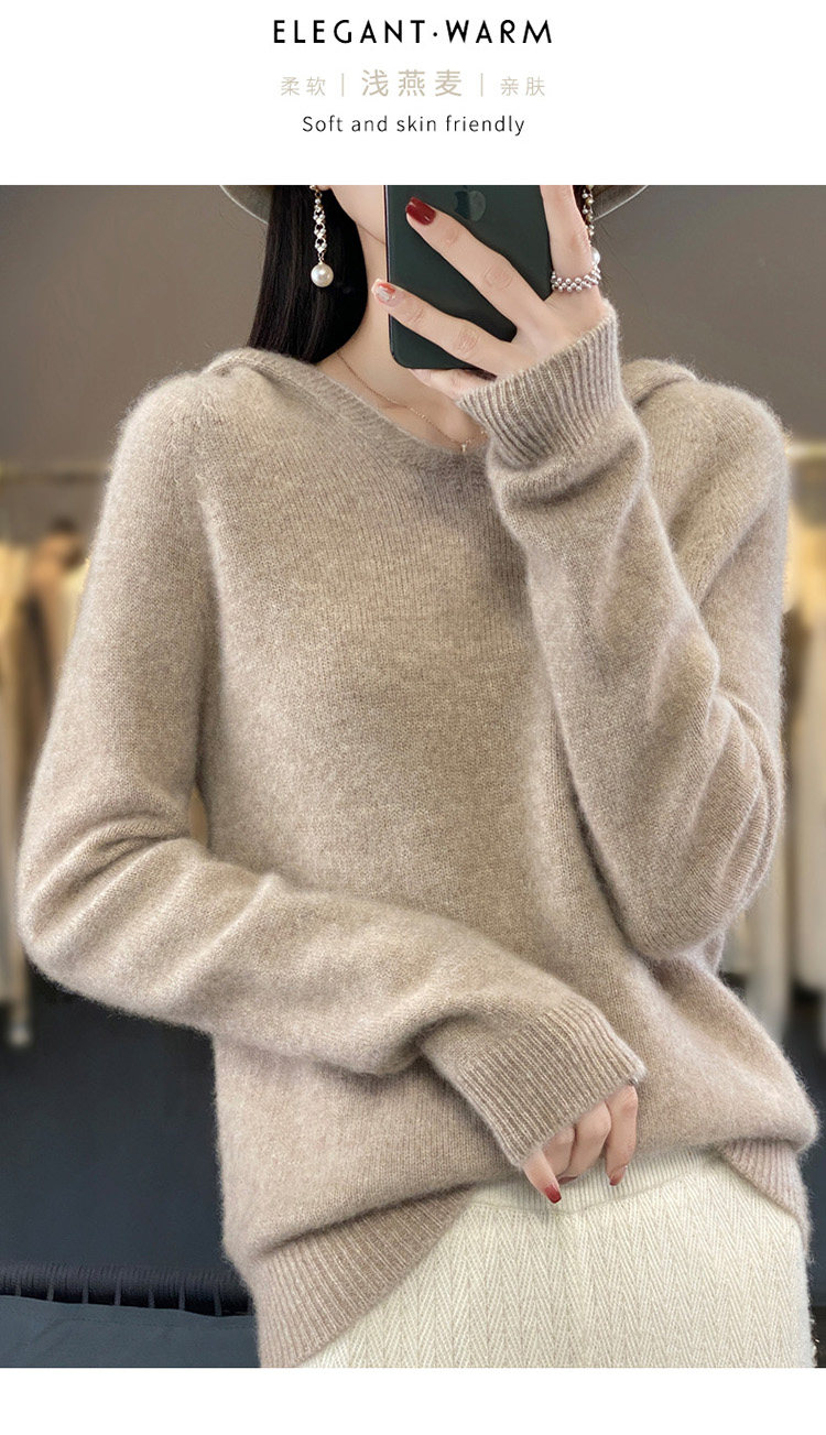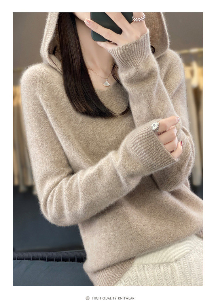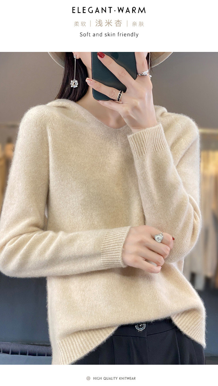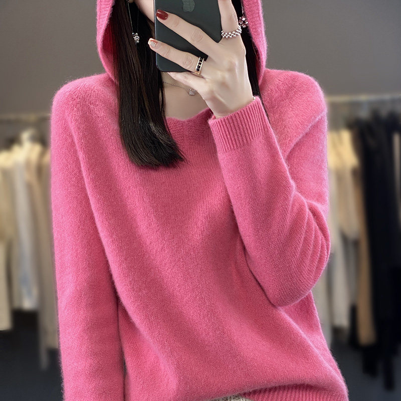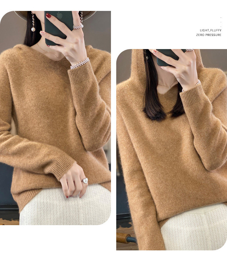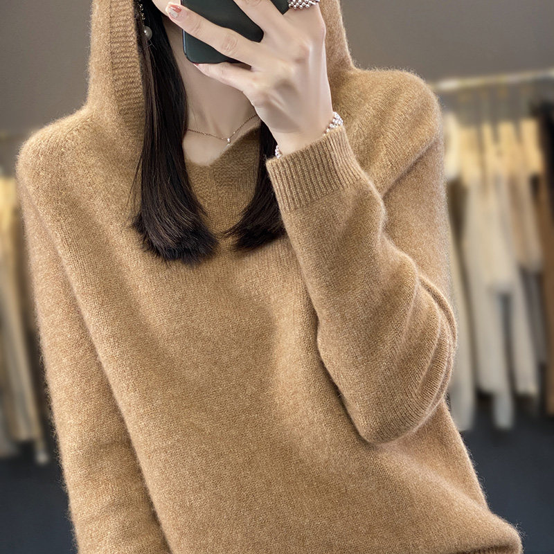 Демисезонный шерстяной свитер, толстовка с капюшоном, лонгслив, свободный крой