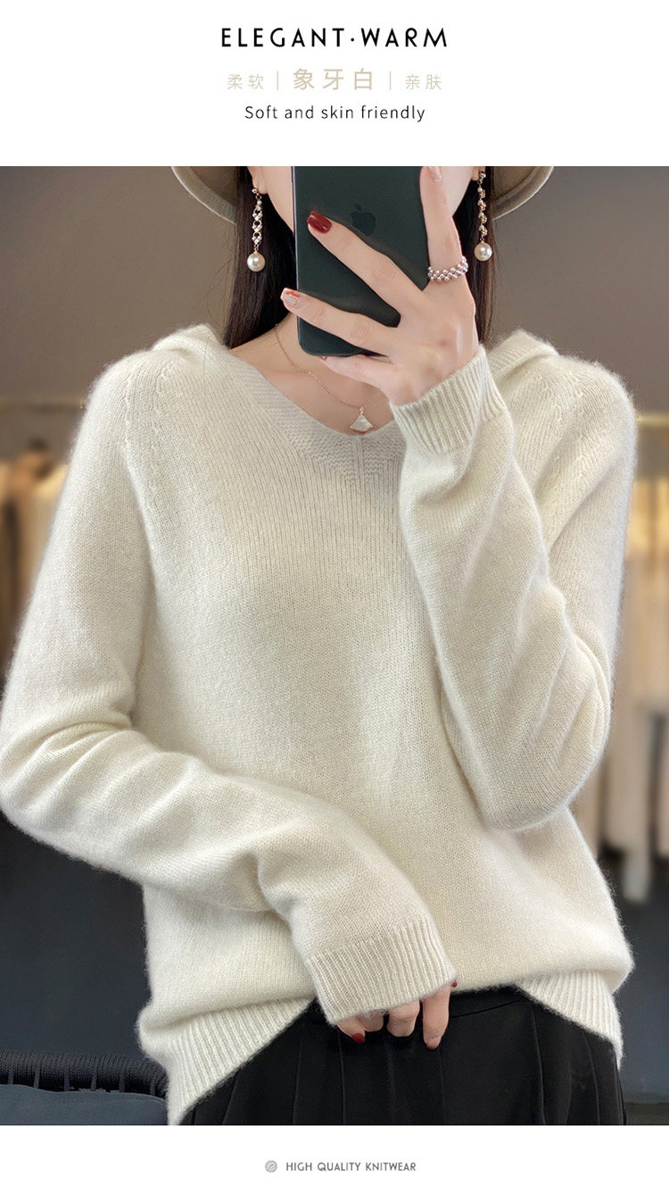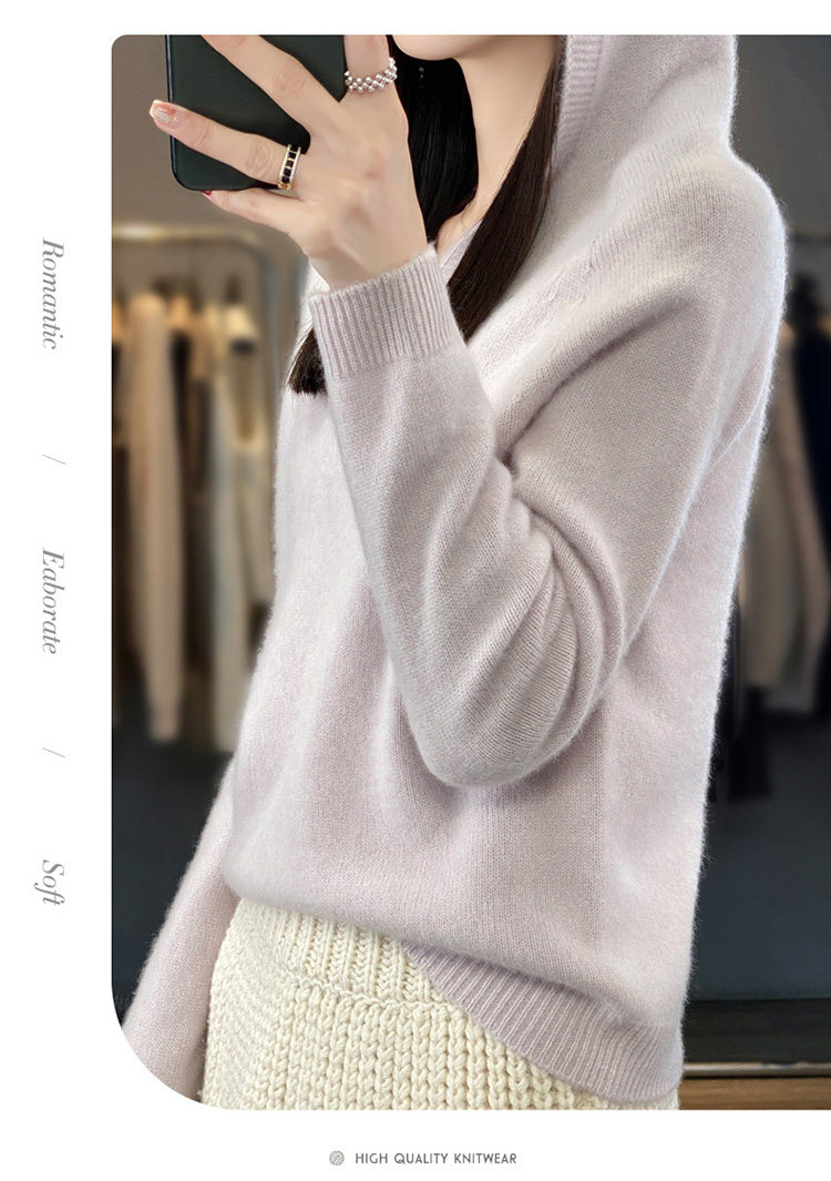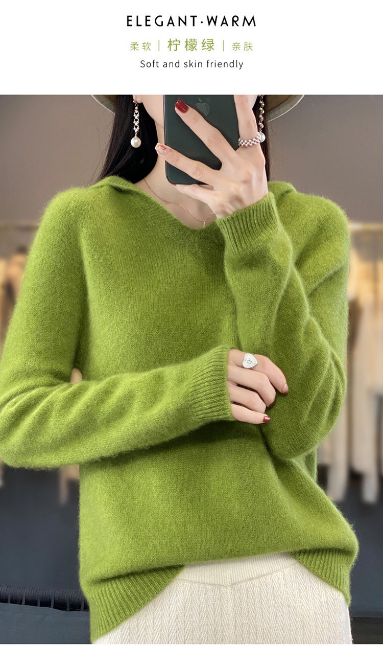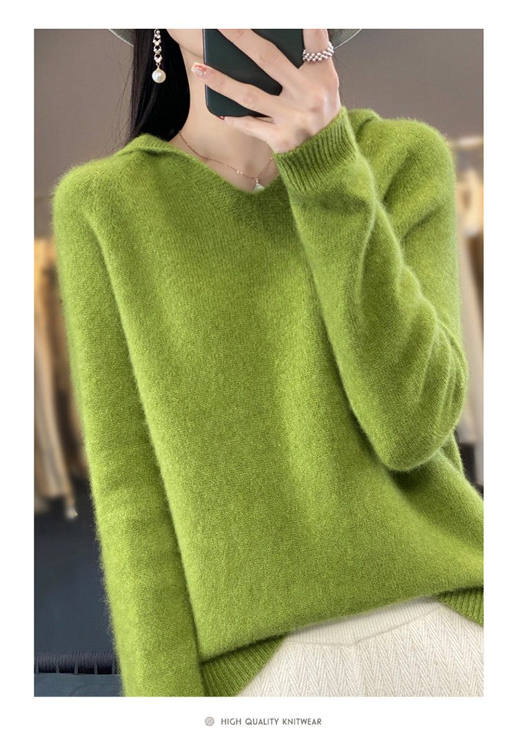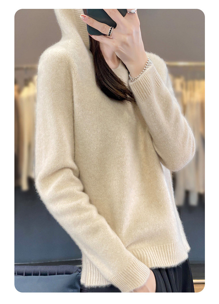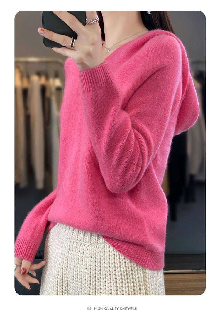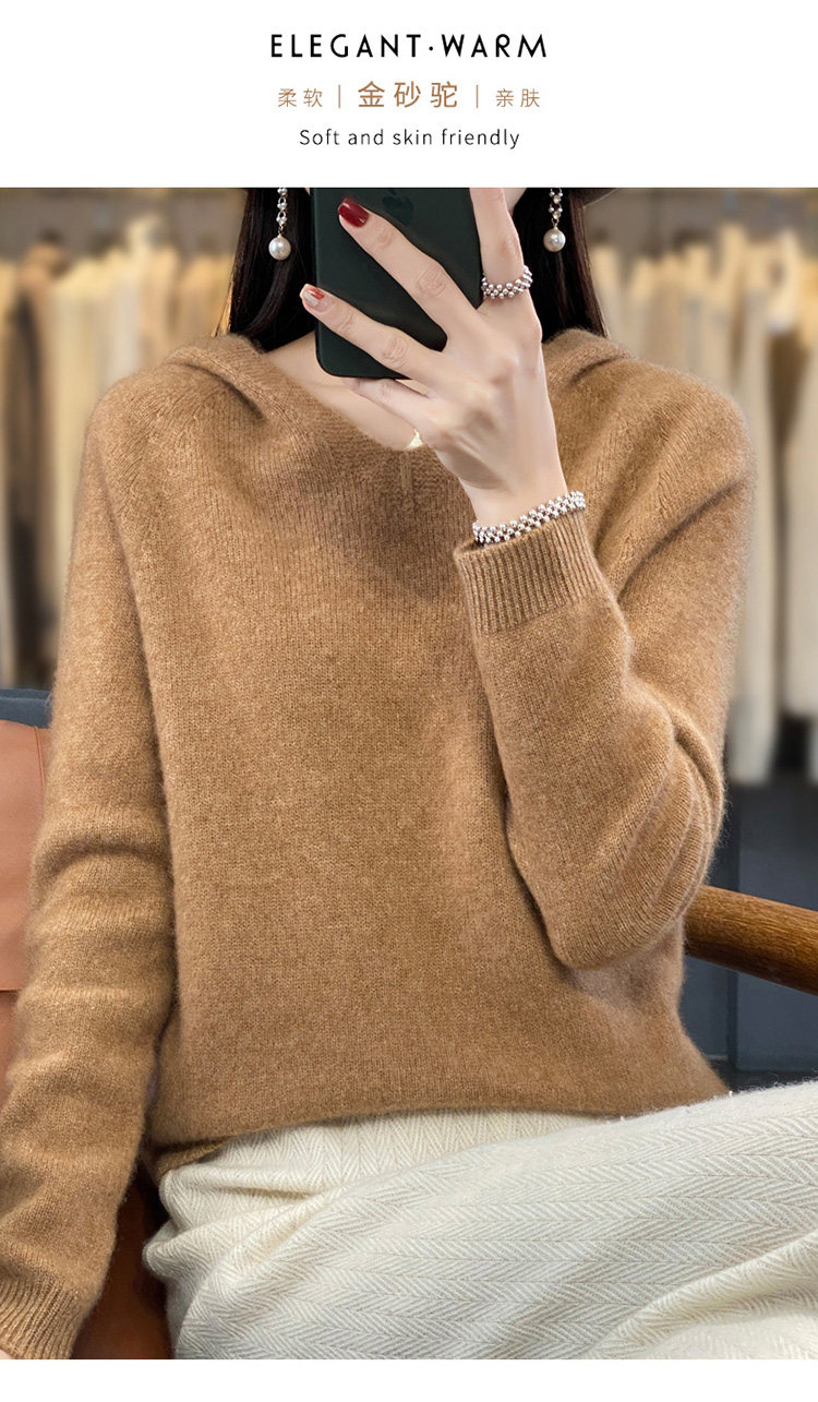 Демисезонный шерстяной свитер, толстовка с капюшоном, лонгслив, свободный крой