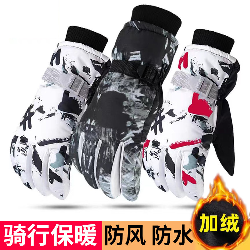 Мужские лыжные перчатки, удерживающий тепло утепленный зимний водонепроницаемый электромобиль для велоспорта