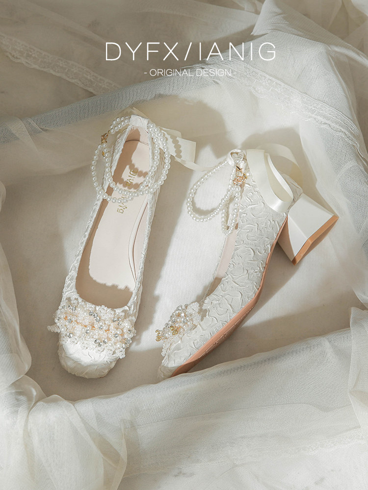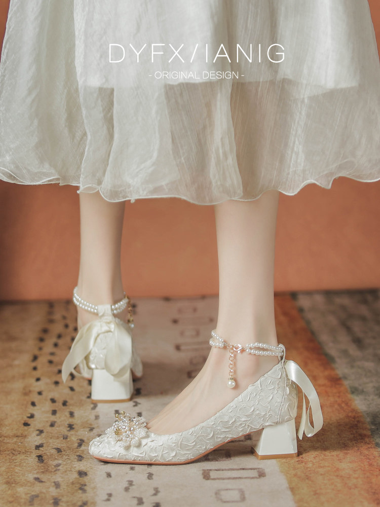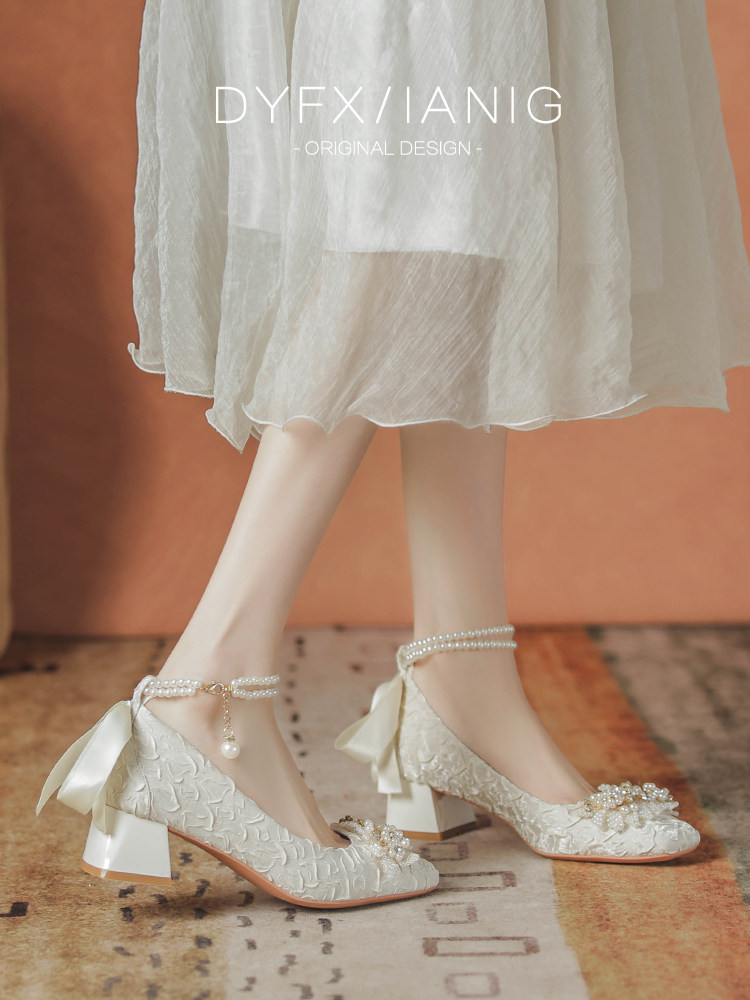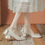 Французские туфли Мэри Джейн для помолвки, свадебные туфли, женские туфли на толстом каблуке, Hexiu, свадебное платье, туфли для беременных с квадратным носком, не уставшие ноги