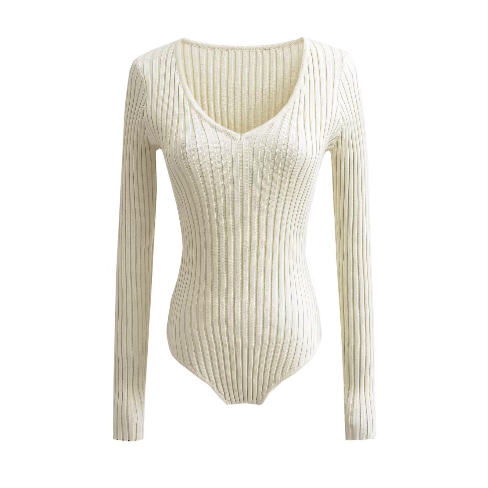 Сексуальный лонгслив, приталенный свитер, комбинезон, европейский стиль, V-образный вырез