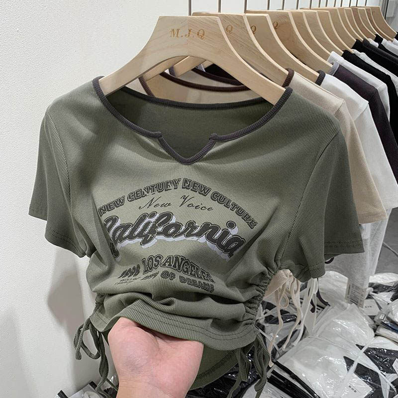 Школь y2k Thritt Women Letter Crop Top American Retro