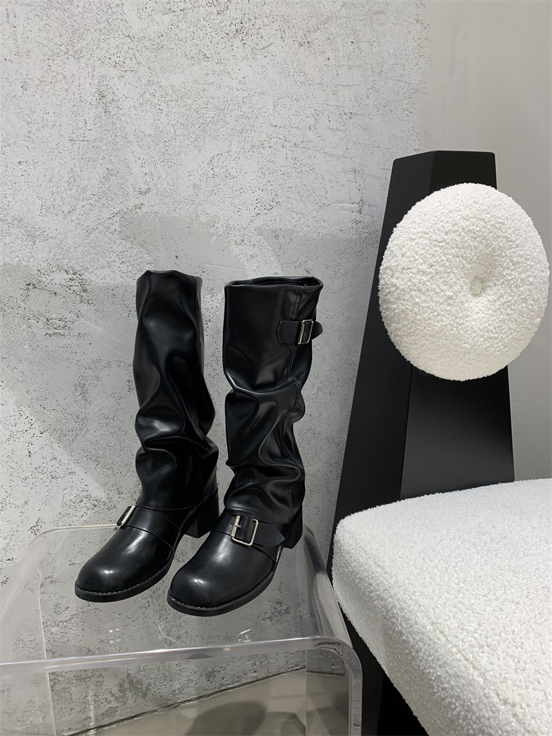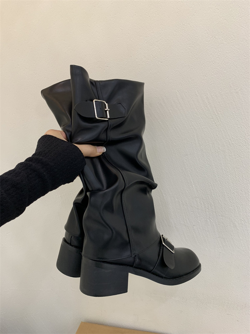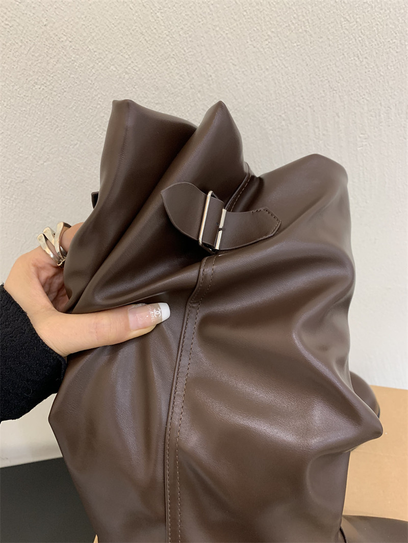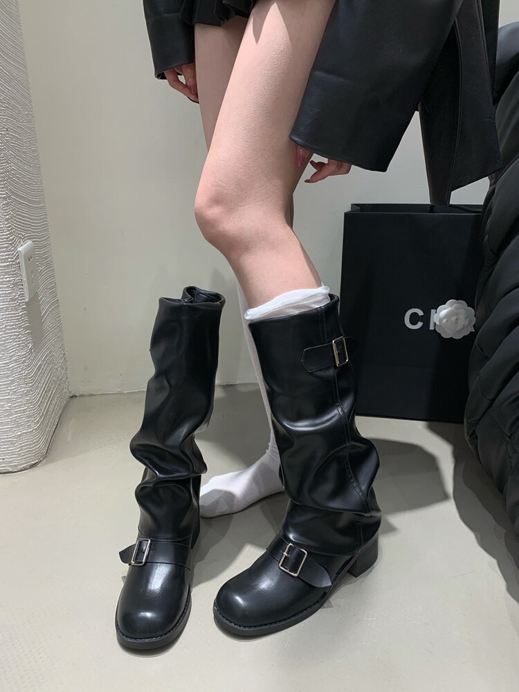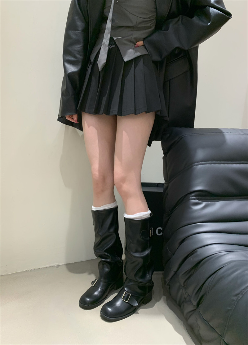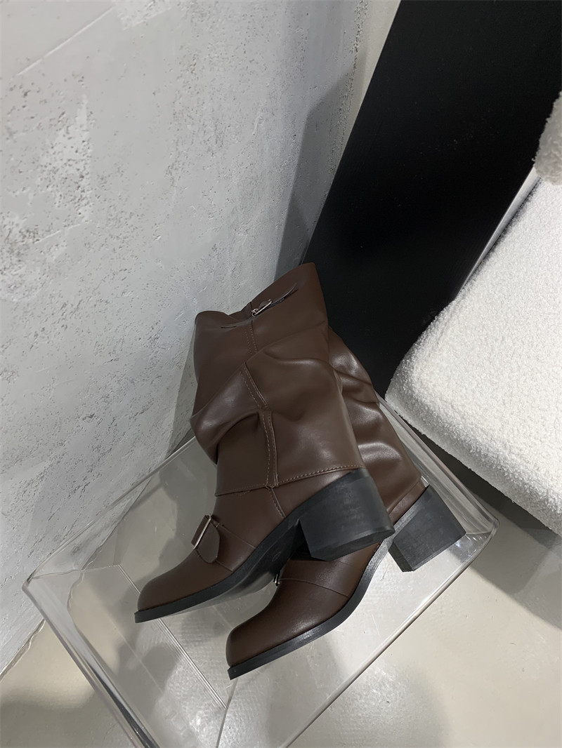 Коричневые эластичные ботинки, высокие сапоги, ремень, пряжка