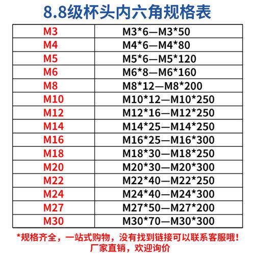 8.8 Цилиндрические волосы с высокой силой черной шестиугольной винтной чашки для головки болт M3 M4 M5 M6 Целая коробка