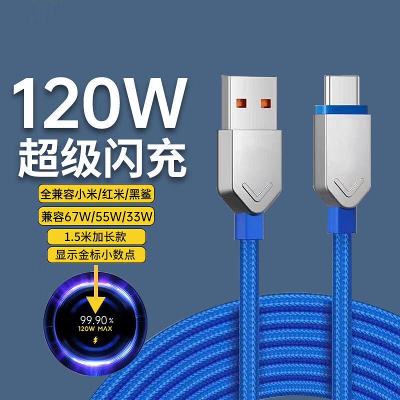 Xiaomi, синий плетеный совместимый мобильный телефон, зарядный кабель с зарядкой, 120W, 6A