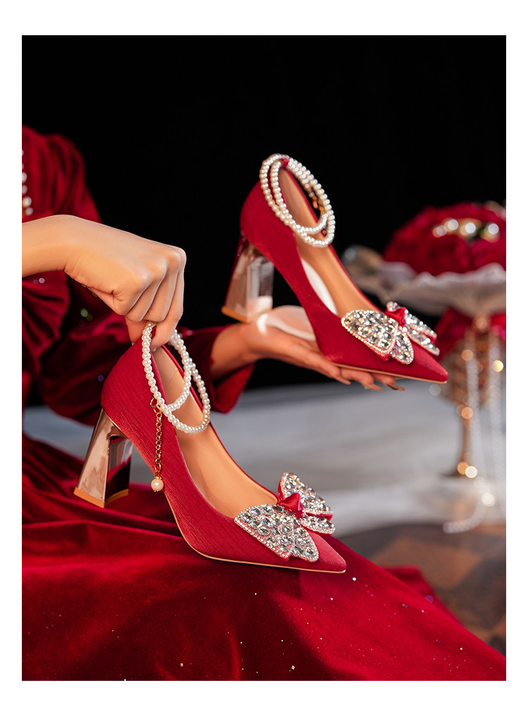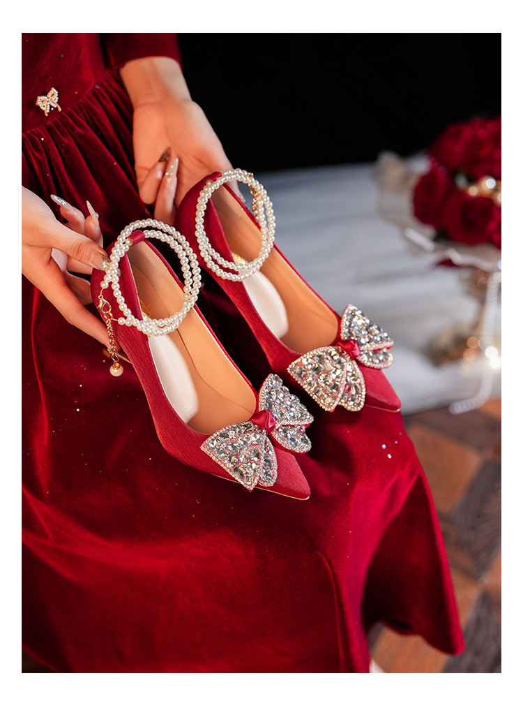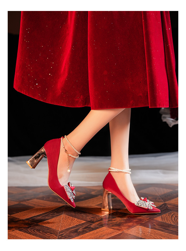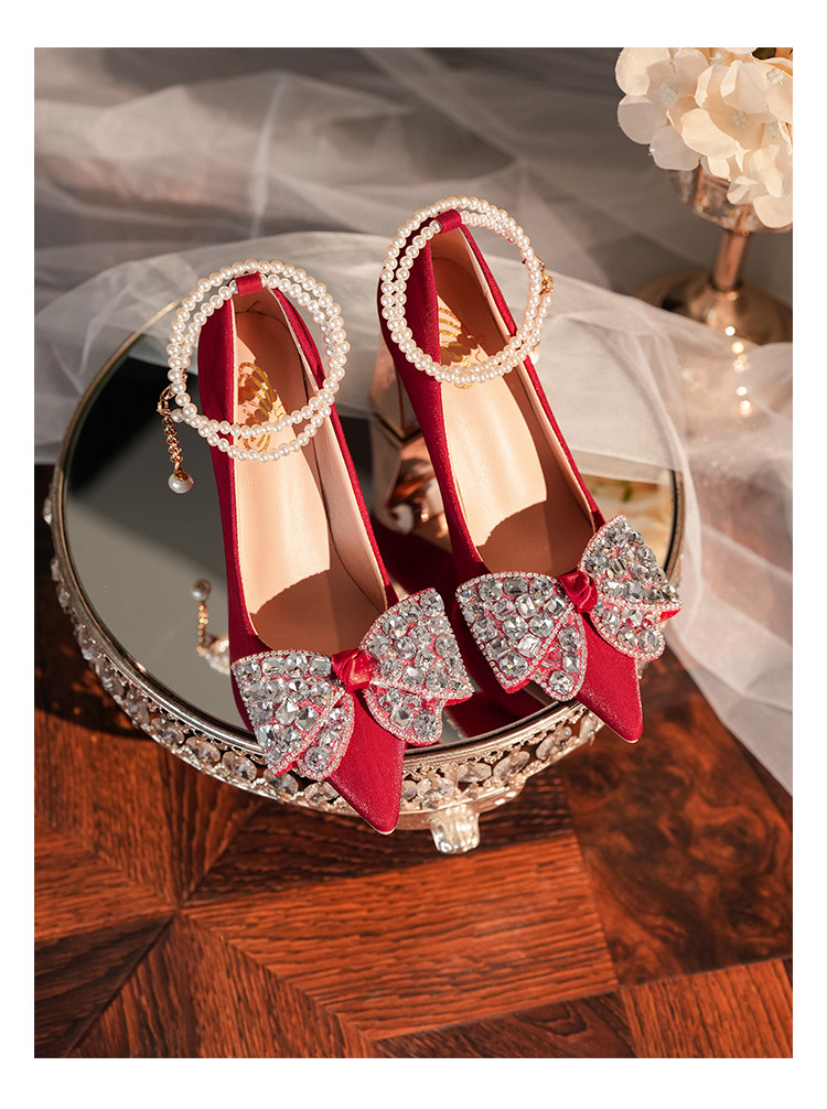 Свадебные туфли, красная обувь, традиционный свадебный наряд Сюхэ для невесты, свадебное платье на высоком каблуке с бантиком, китайский стиль