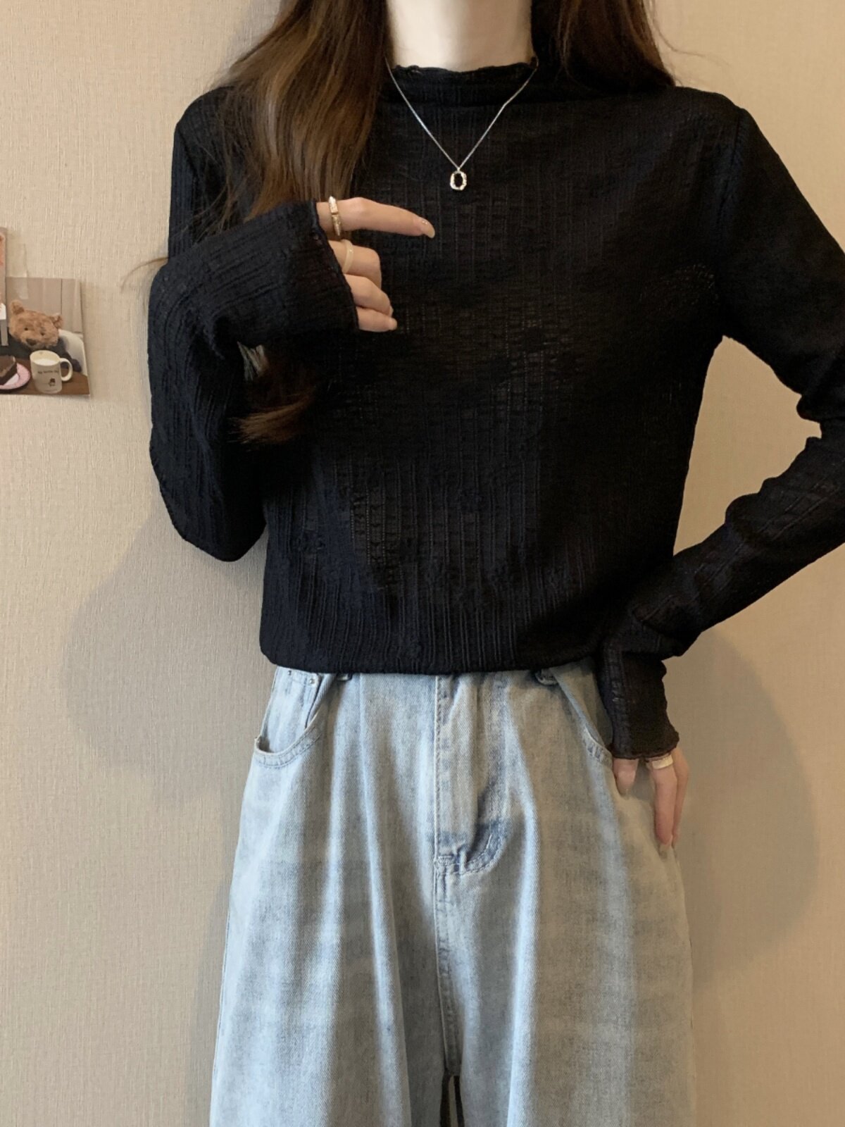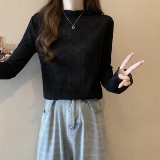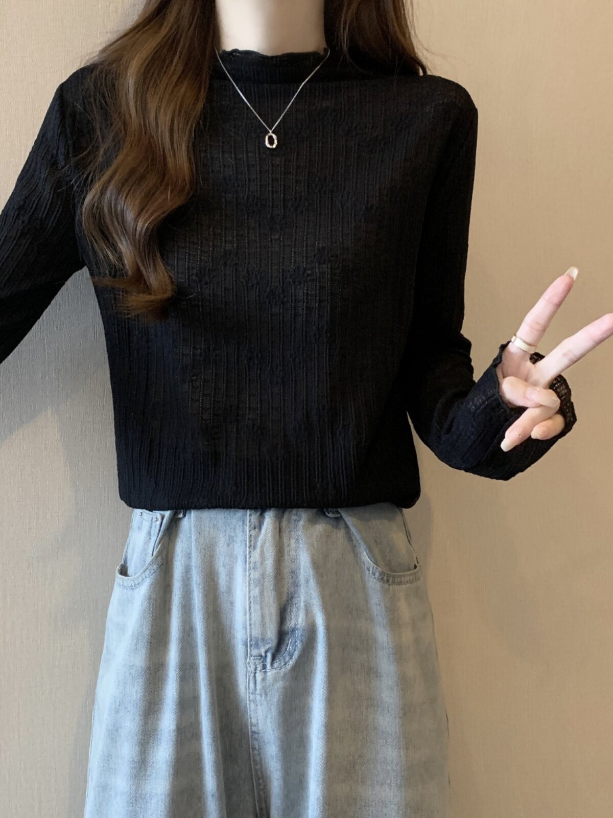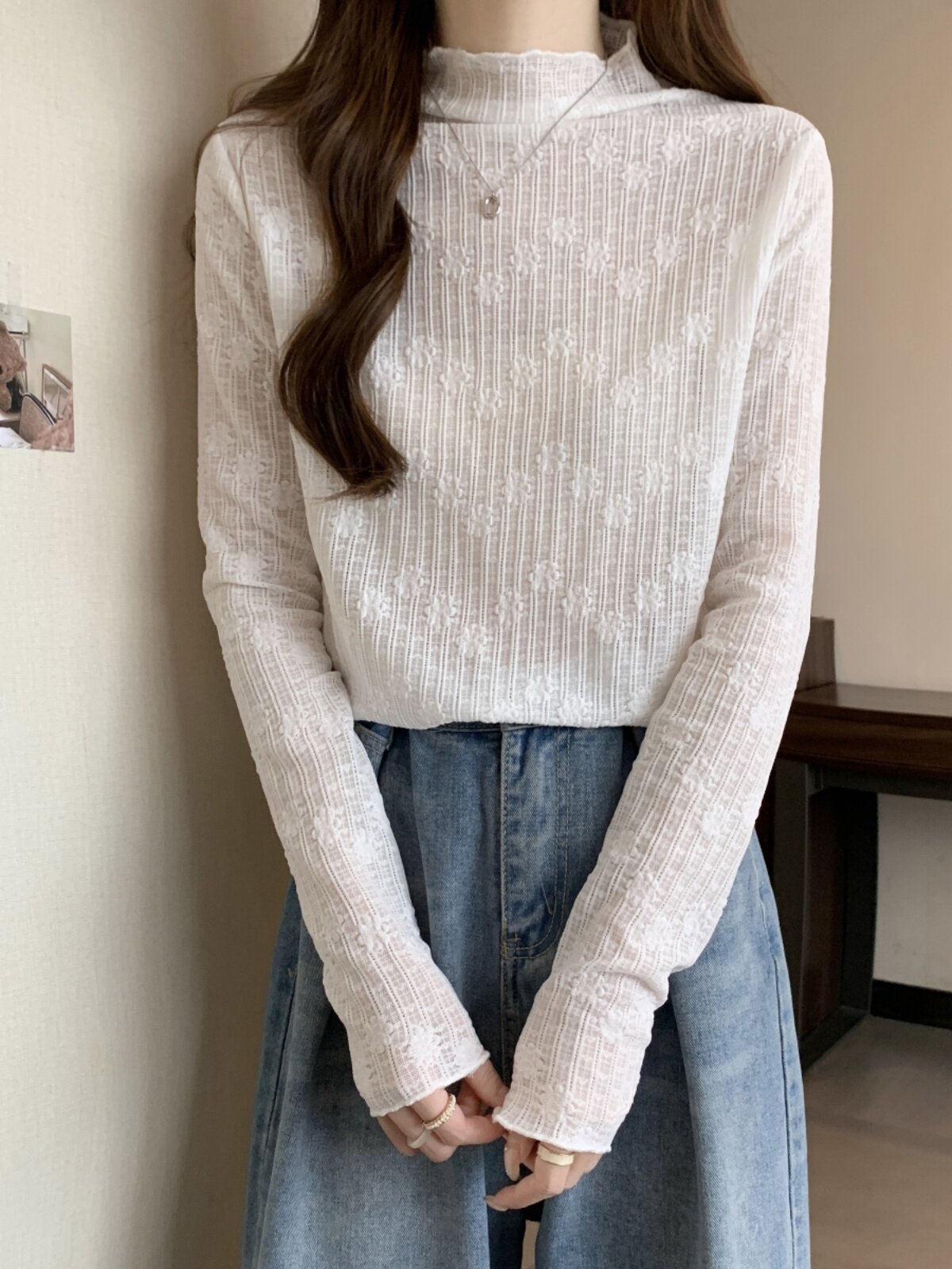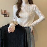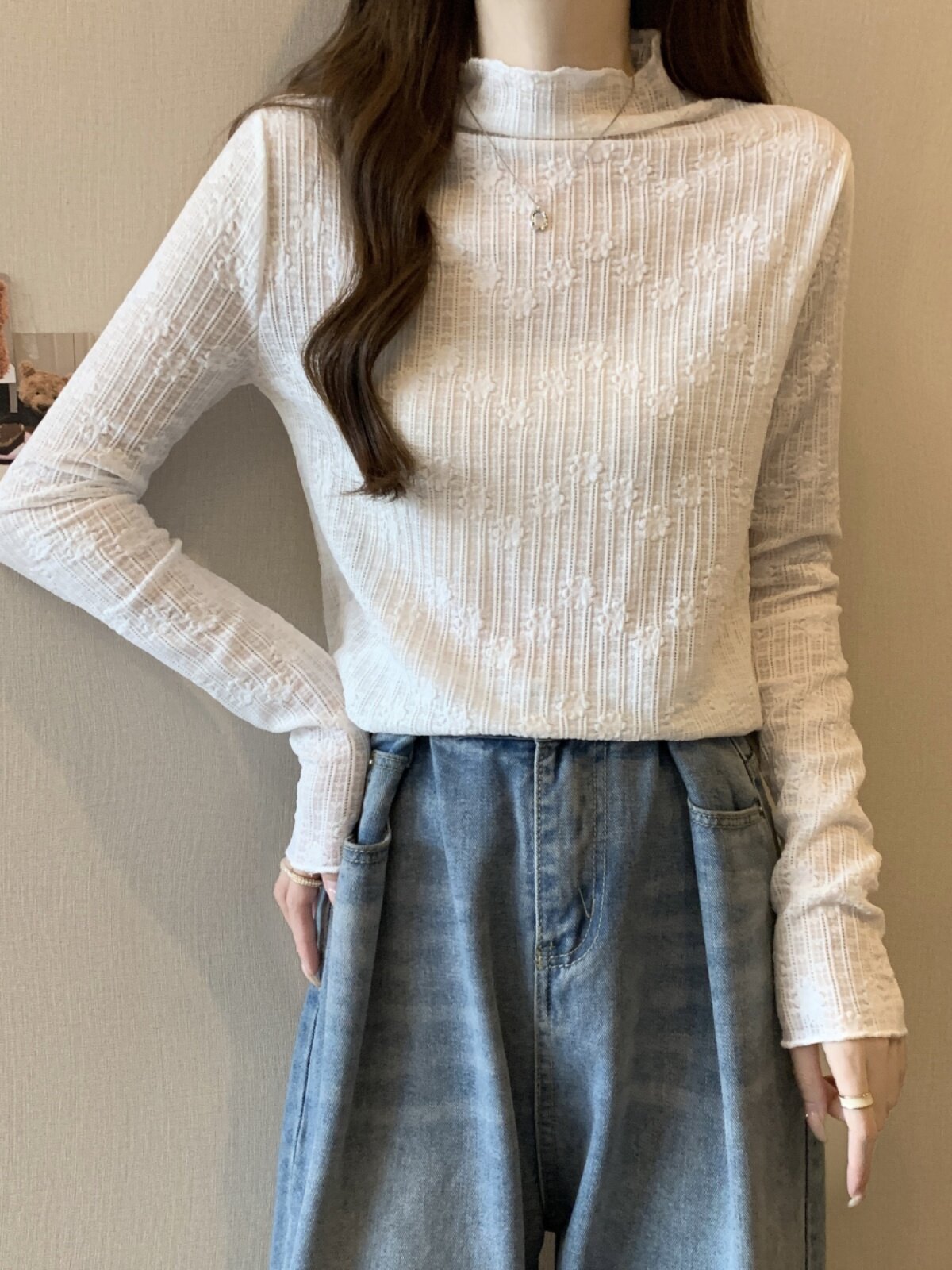 Белый базовый приятный телу кружевной демисезонный лонгслив, большой размер, высокий воротник