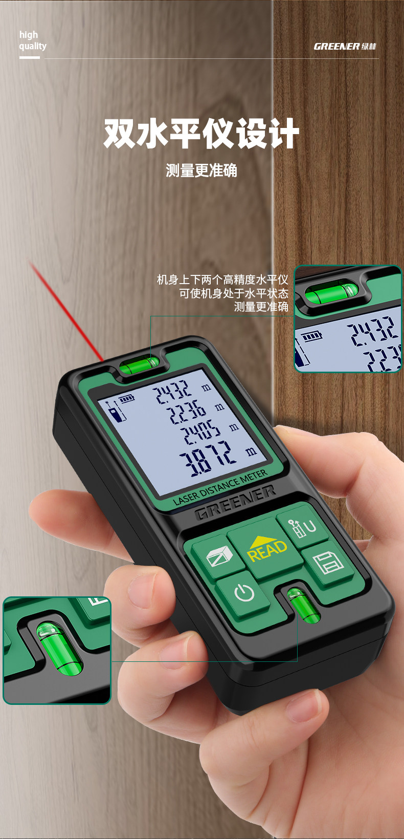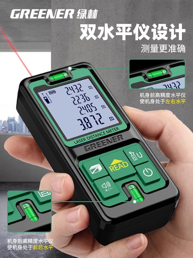 Зеленый лесной лазер в диапазоне в диапазоне с высоким показателем портативной лазерной линейки электронный инфракрасный измеренный измерение