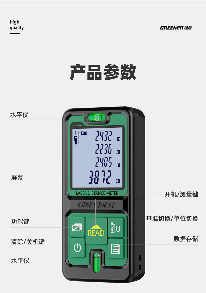 | Классификация цветов: | Запатентованная конструкция, пожизненная гарантия и только замена, без ремонта., 50 метров инфракрасного излучения [двухуровневый пузырь] с рулеткой + аккумулятор, 70 метров инфракрасного излучения [двухуровневый пузырь] с рулеткой + аккумулятор, 100 метров инфракрасного излучения [двухуровневый пузырь] с рулеткой + аккумулятор, Инфракрасное излучение на 120 м [двухуровневый пузырь] с рулеткой + аккумулятор., 70 метров зеленого света [двухуровневый пузырь] [для внутреннего и наружного использования], Импортная универсальная батарея с чипом, поясная сумка, 50м, Импортная универсальная батарея с чипом, поясная сумка, 70м, Импортная универсальная батарея с чипом, поясная сумка, 100м, Импортная универсальная батарея с чипом, поясная сумка, 120м, 50-метровая модель с литиевым аккумулятором для голосовой связи и большим экраном [прямая зарядка через USB/электронный уровень/водонепроницаемый IP54] (в комплект входит аккумулятор + поясная сумка), Модель с большим экраном и голосовой зарядкой, 70 метров [прямая зарядка через USB/электронный уровень/водонепроницаемый IP54] (в комплект входит аккумулятор + поясная сумка), Электронная водонепроницаемая батарея с зарядкой, поясная сумка, 100м, широкий экран |