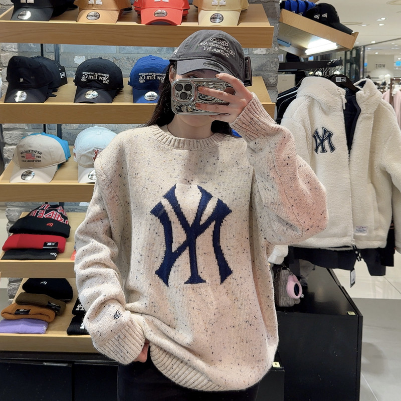 MLB, демисезонный трикотажный свитер подходит для мужчин и женщин, свободный крой