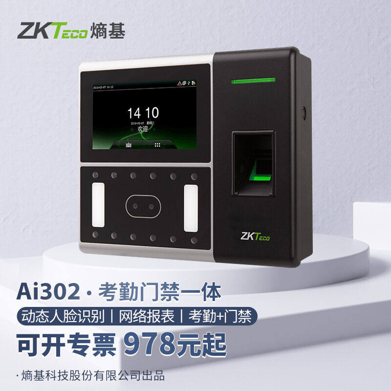 Zkteco энтропийная базовая технология AI302 показывает, что распознавание лица распознавания лица на машине отпечатков пальцев Gaing Machine