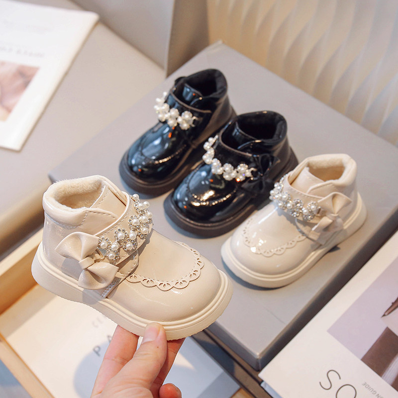 Утепленные ботинки, черные детские короткие сапоги для принцессы для кожаной обуви, коллекция 2023, в западном стиле, мягкая подошва