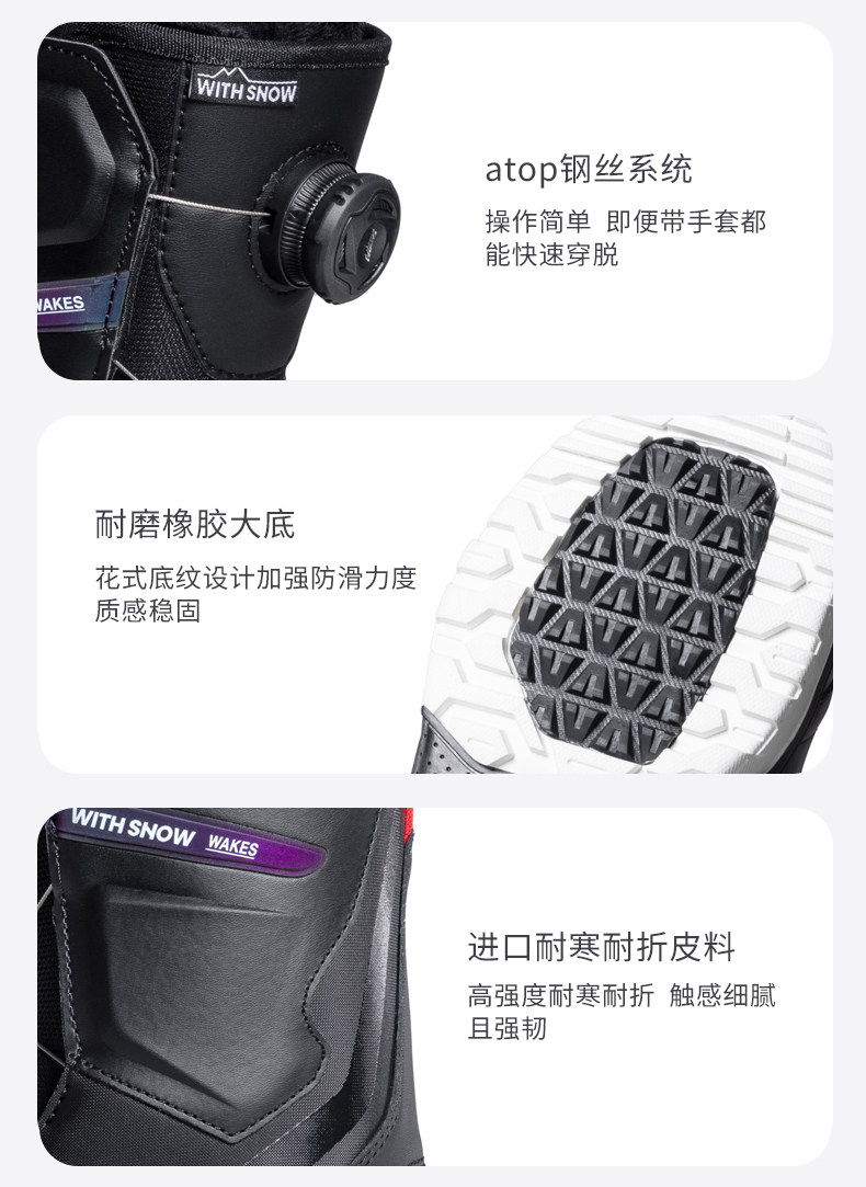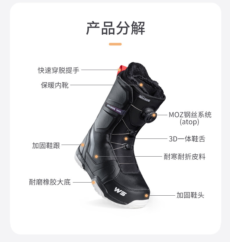 WS Ski Shoes Steel Wire Fast Wear Один борт снегоступы мужская плоская цветочная резьба скользит во всех регионах лыжные туфли женские модели