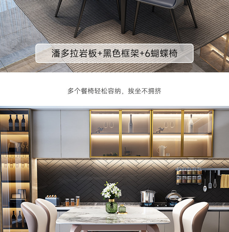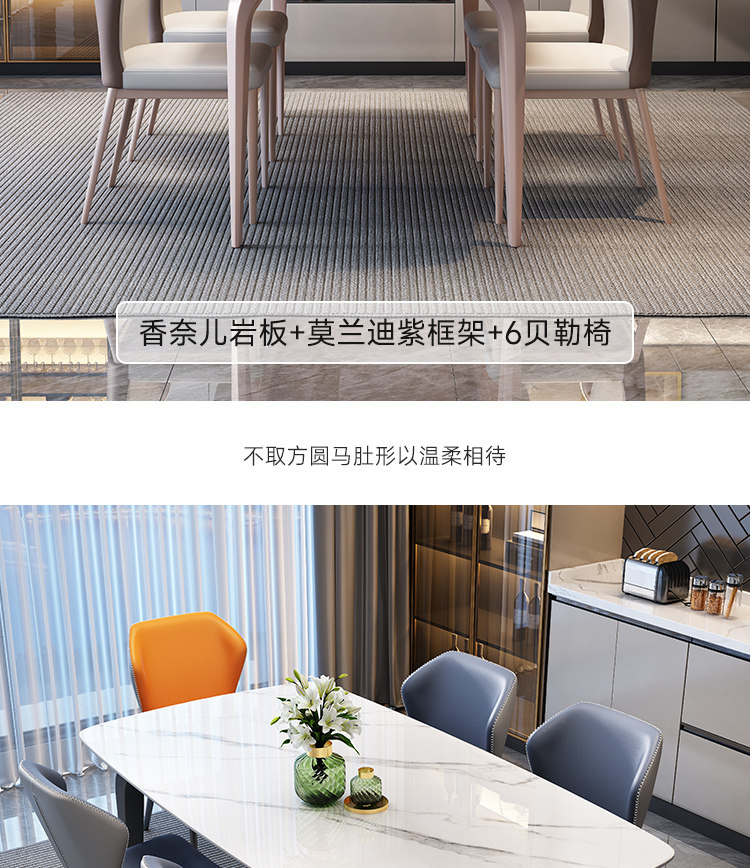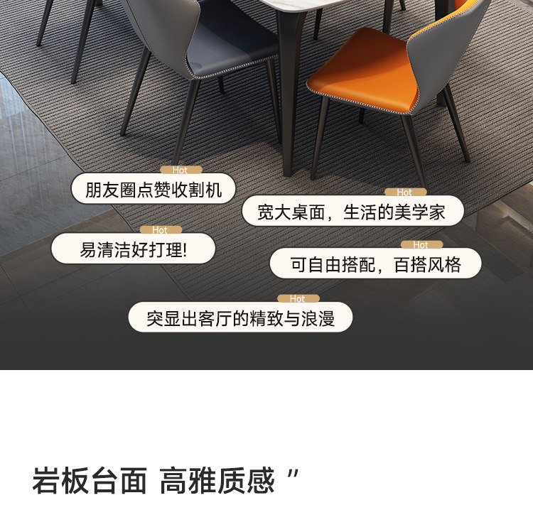 - Прямоугольный обеденный стол+кресло*6 [12 -миллиметровая каменная доска] с нижней пластиной