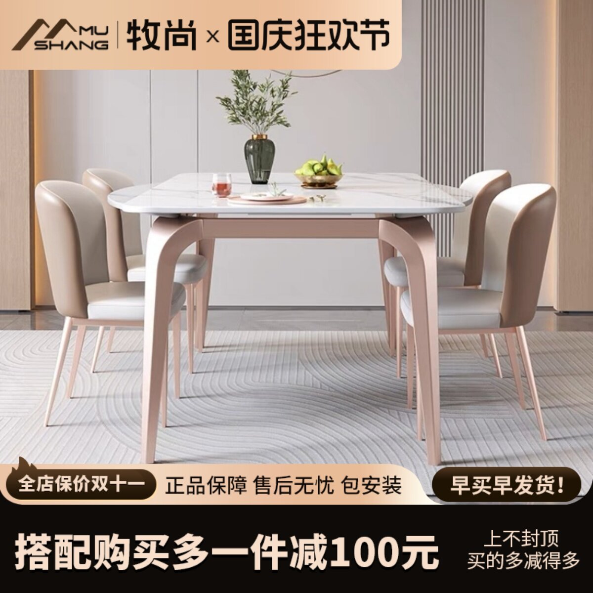 - Прямоугольный обеденный стол+кресло*8 [12 -миллиметровая каменная доска] с нижней пластиной