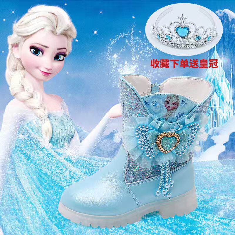 Демисезонные утепленные сапоги для принцессы с бантиком, «Холодное сердце», средней длины