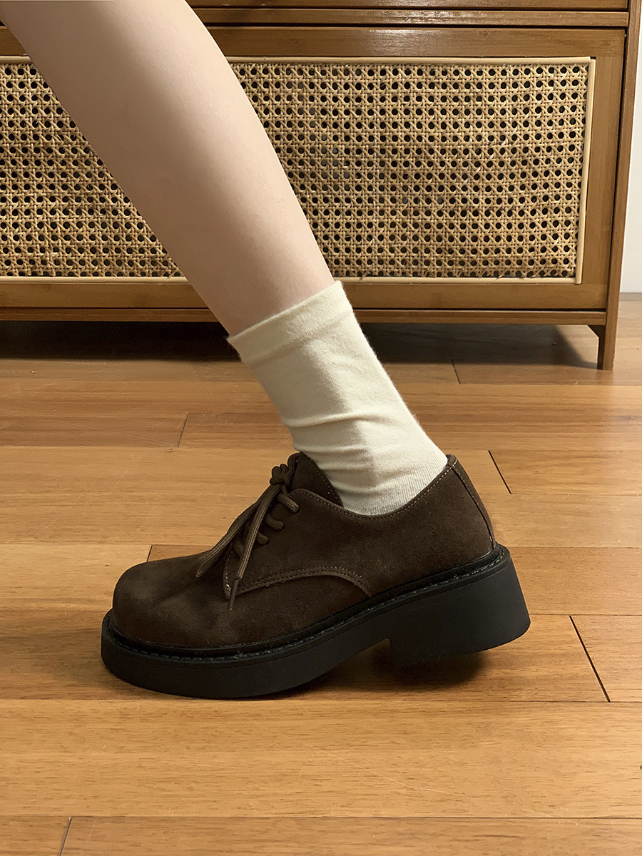 Коричневая весенняя универсальная обувь в английском стиле на платформе для кожаной обуви, в британском стиле