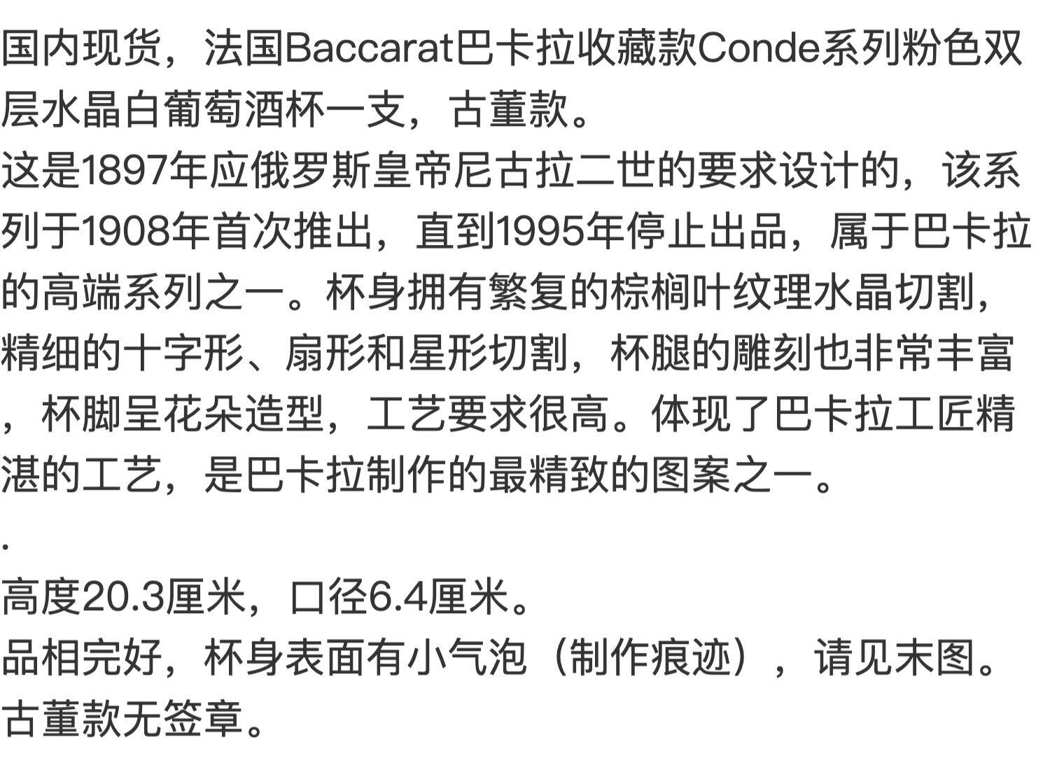Spot -of -spot Antiques French Baccarat/Bakara Conde Series серия розового хрустального вина бокал