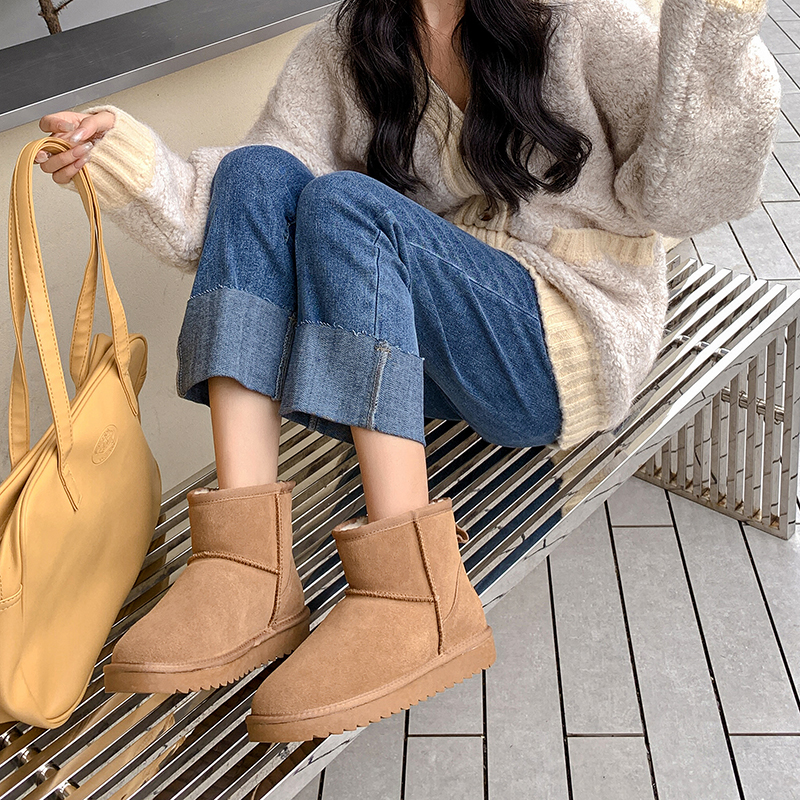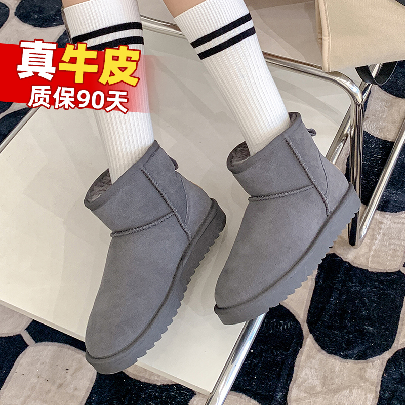 Кожаные короткие сапоги, демисезонные ботинки, флисовые туфли, из натуральной кожи