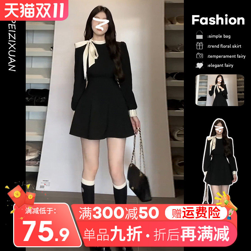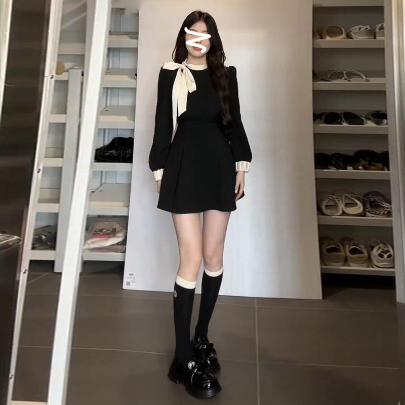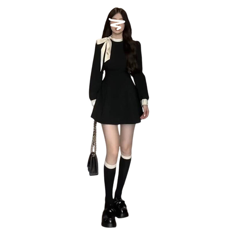 Черный лонгслив, осеннее платье, корсет, мини-юбка, французский стиль, премиум класс, подходит для подростков