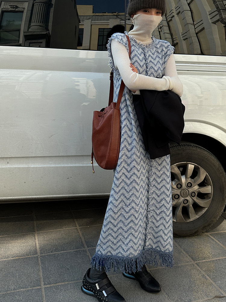 Трикотажный осенний жилет, платье без рукавов, осенняя юбка, платье с рукавами без рукавов, французский стиль, яркий броский стиль, свободный крой