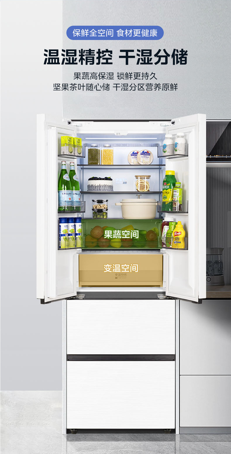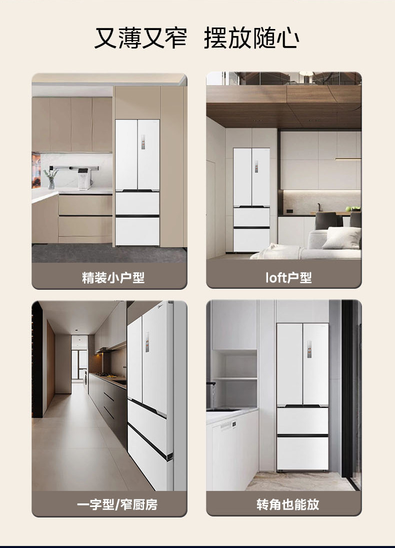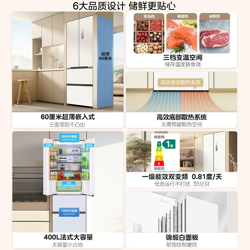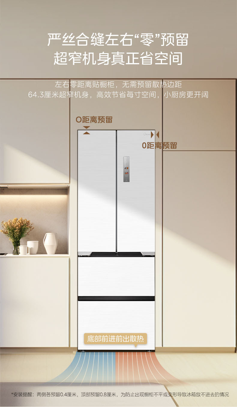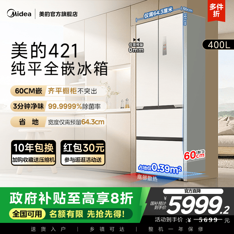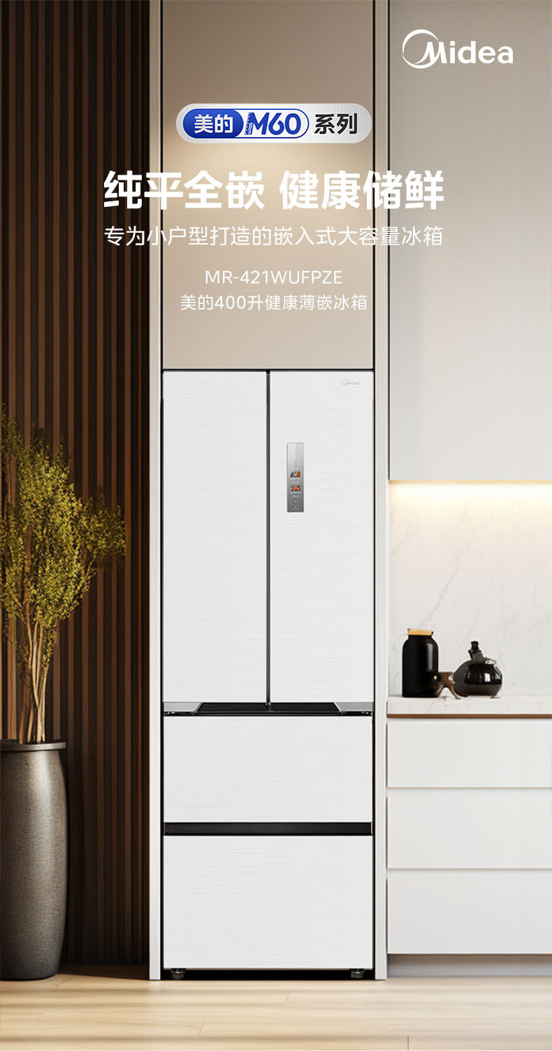 Государственная субсидия на замену Ультратонкий холодильник Midea 421 Французский многодверный двойной открывающийся 𫔭 закрытые четыре двери нулевой встроенный домашний белый