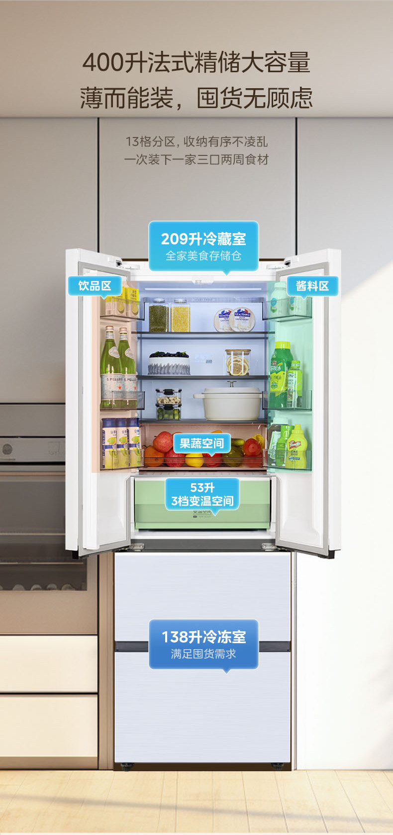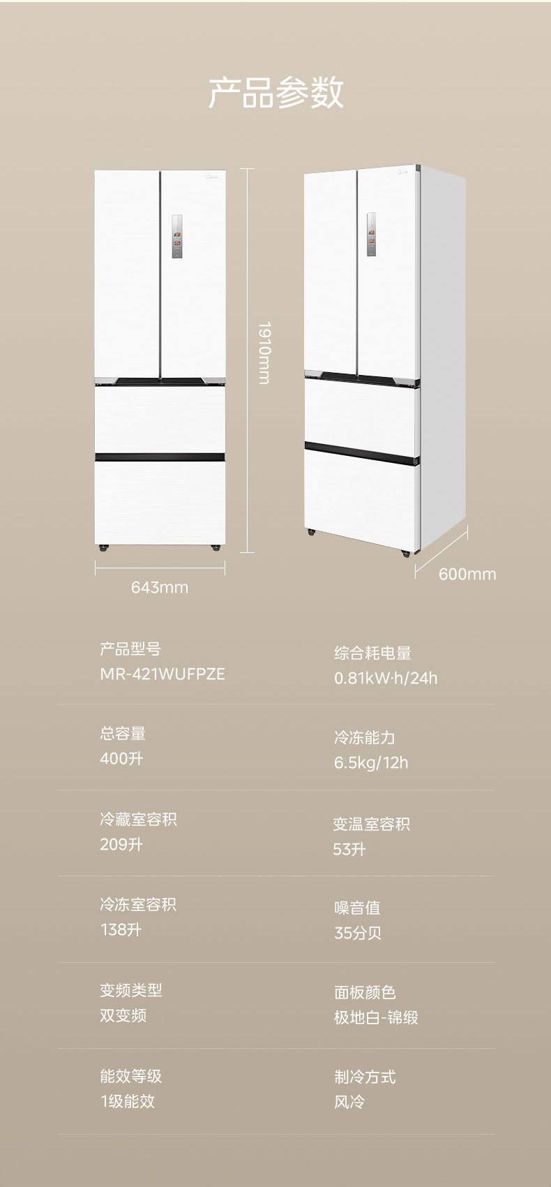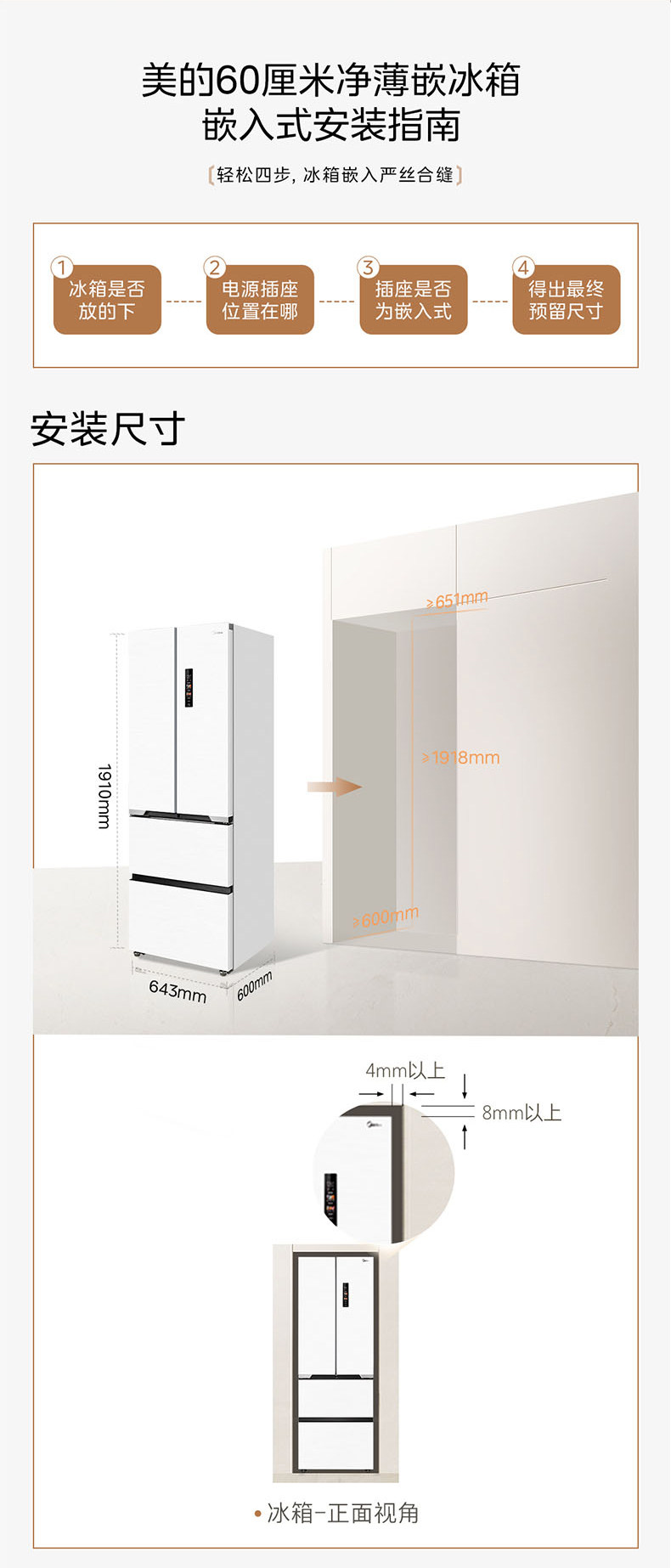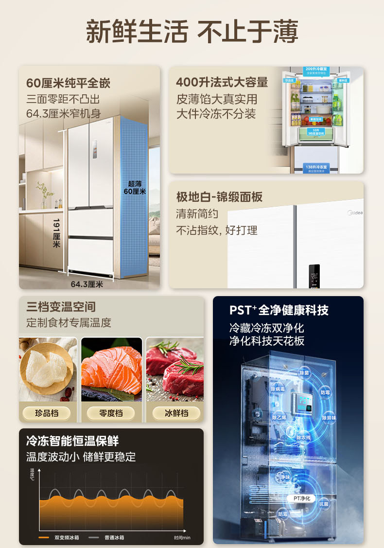 Государственная субсидия на замену Ультратонкий холодильник Midea 421 Французский многодверный двойной открывающийся 𫔭 закрытые четыре двери нулевой встроенный домашний белый