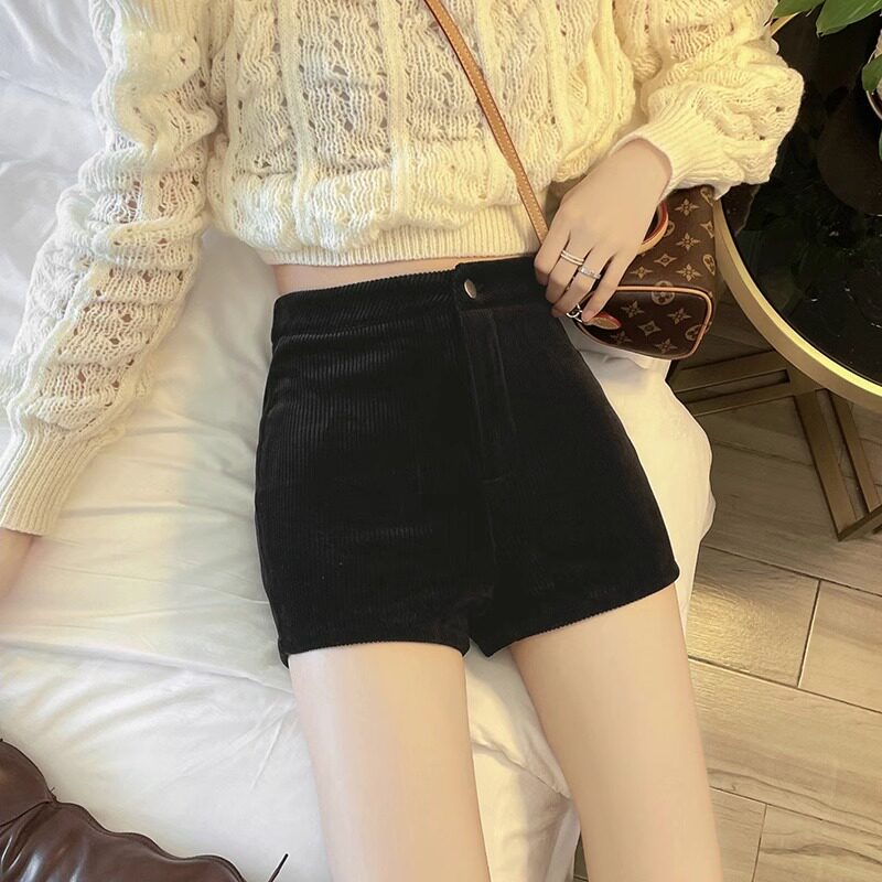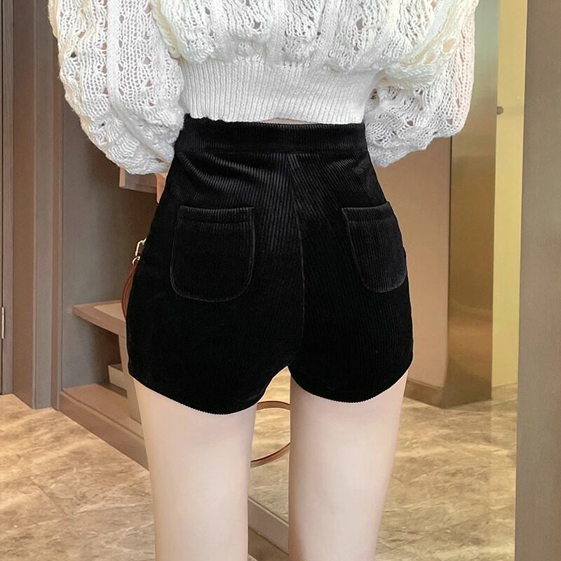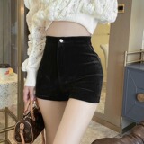 Черные вельветовые шорты для отдыха, эластичные сексуальные бархатные базовые штаны, коллекция 2023, высокая талия, в обтяжку, с акцентом на бедрах